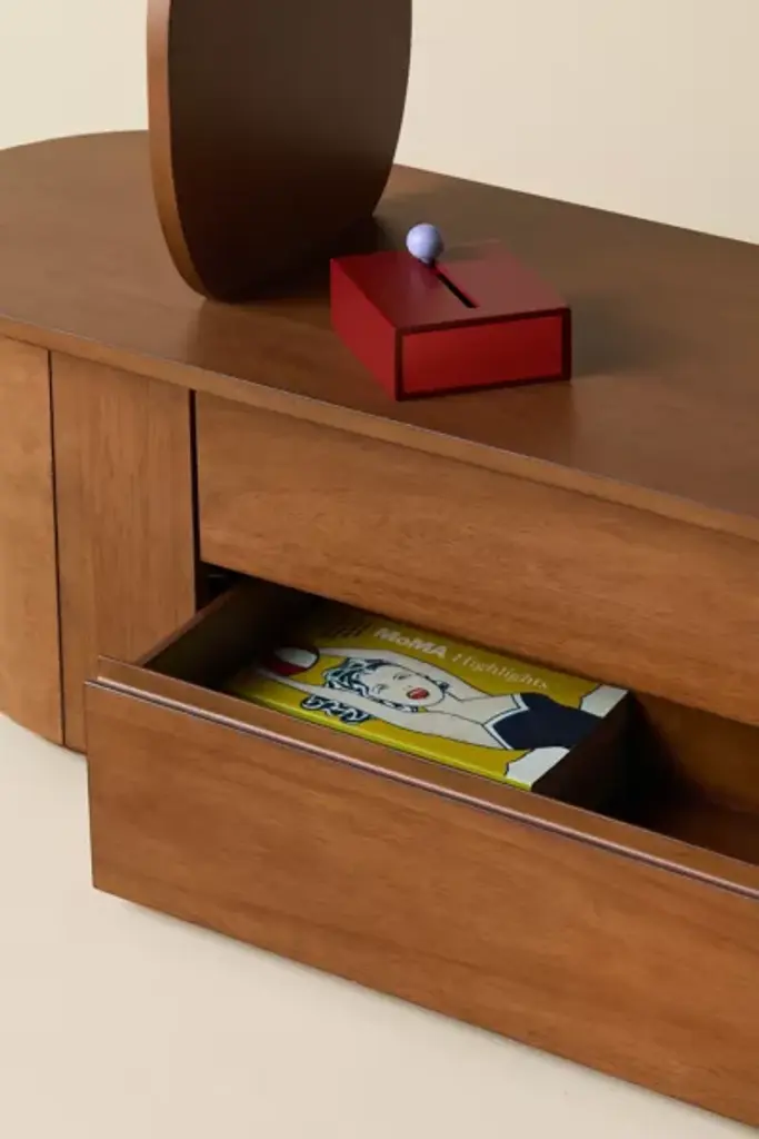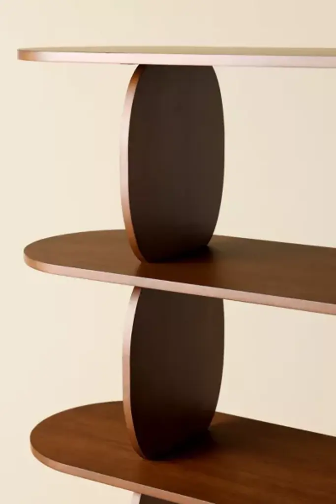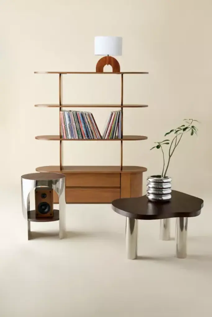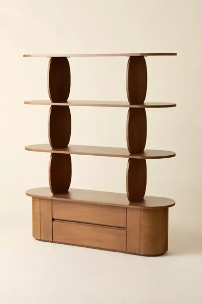 Create a mid-century modern display in your living space, bedroom and anywhere in-between with this sleek bookshelf in an open & airy design we love. Complete with four ovular-shaped tiers to share your plants, books and home décor, this tall storage unit is complete with two drawers at the base to stash away your less sightly belongings. Available exclusively at Urban Outfitters. **Features** \- Rue 4-Tier Ovular Storage Unit from UO Home’s new Rue furniture collection \- Four fixed shelves in an open & airy design \- Two drawers with three-ball step bearing glides for easy functionality \- Assembly required \- UO exclusive **Content + Care** \- Assembly required - assembly instructions and hardware are included \- Rubberwood, plywood, MDF, rubberwood veneer \- Wipe clean \- Imported