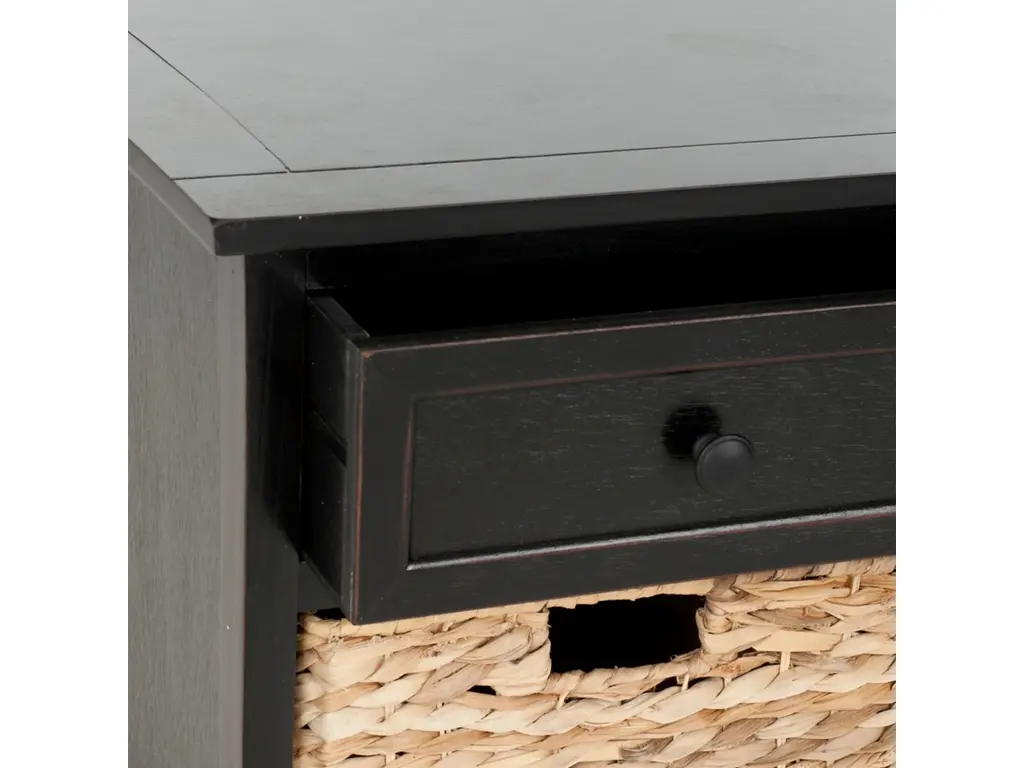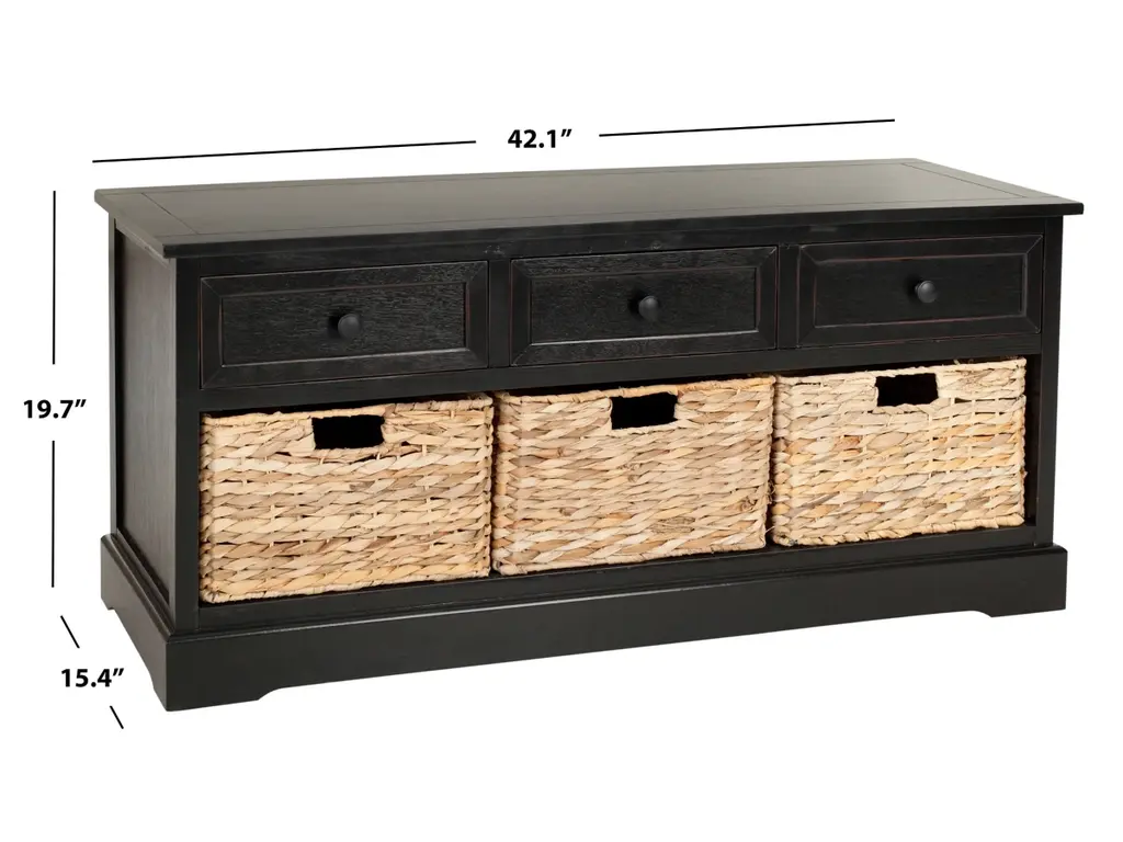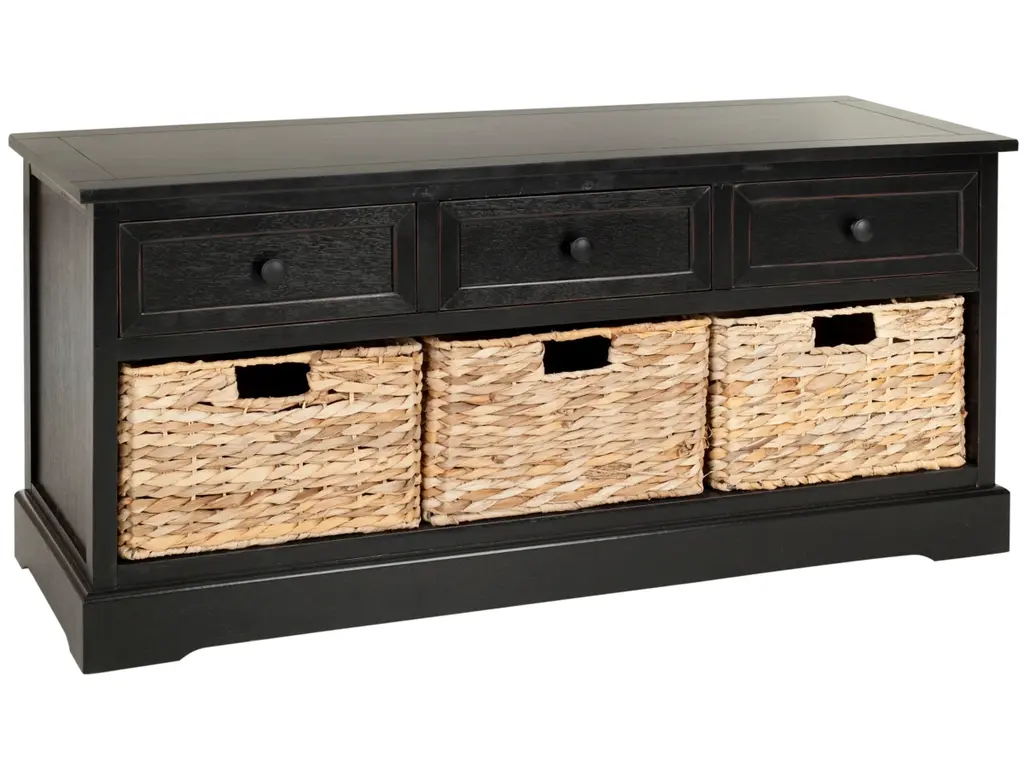 Keep clutter tucked away in this 3-drawer storage unit offering stylish organization for entryways, family rooms and bedrooms. Crafted of sturdy pine with a vintage gray finish, this unit offers three handy drawers for smaller items above three ample wicker baskets that slide in and out for easy use. It is a perfect companion for country homes, city apartments or formal manors.