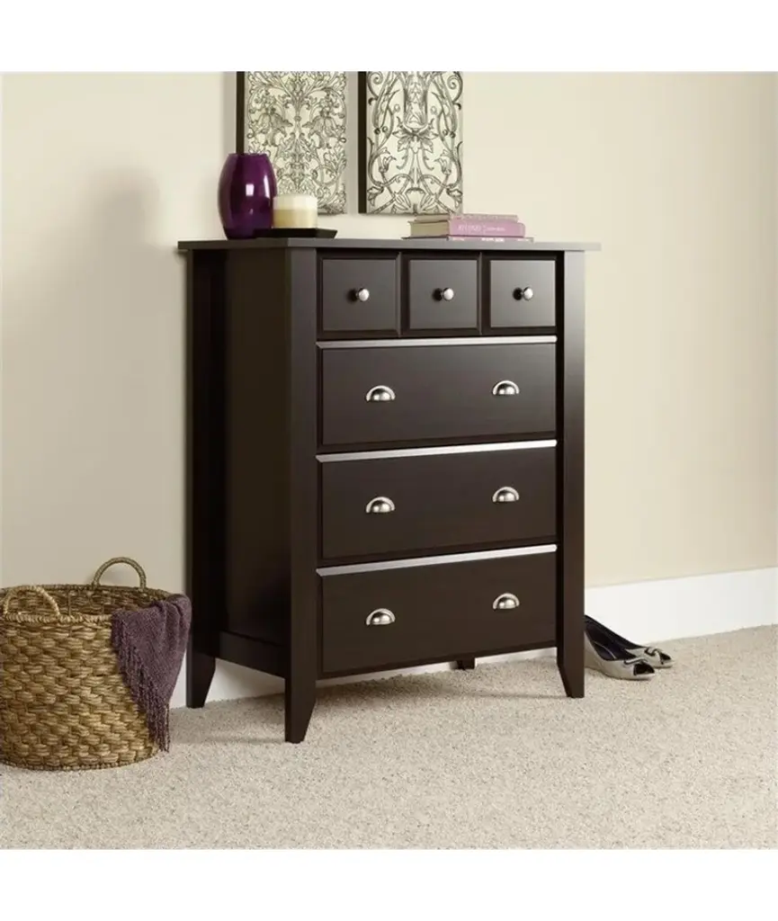 Sauder Shoal Creek Engineered Wood 4 Drawer Chest In Jamocha Wood
