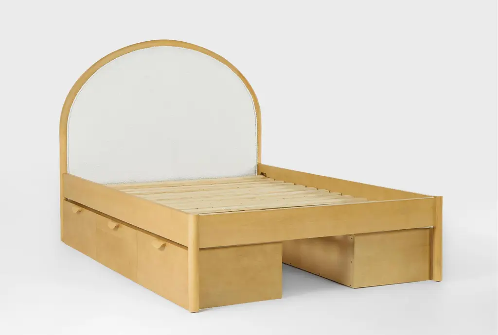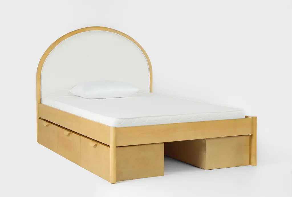 With its warm, inviting Scandinavian design, our Seren boucle upholstered bed with double storage is a breath of fresh air in any kids space. Solid rubberwood and birch cathedral veneers lend beauty, durability and simplicity, while clean lines and curved elements bring an organic feel to its distinctive contemporary style. Crafted with exceptional quality and care, each detail is thoughtful and intentional. You'll find a variety of coordinating items that bring function, comfort and convenience to your family's life, allowing everyone to enjoy a sense of peace and ease.