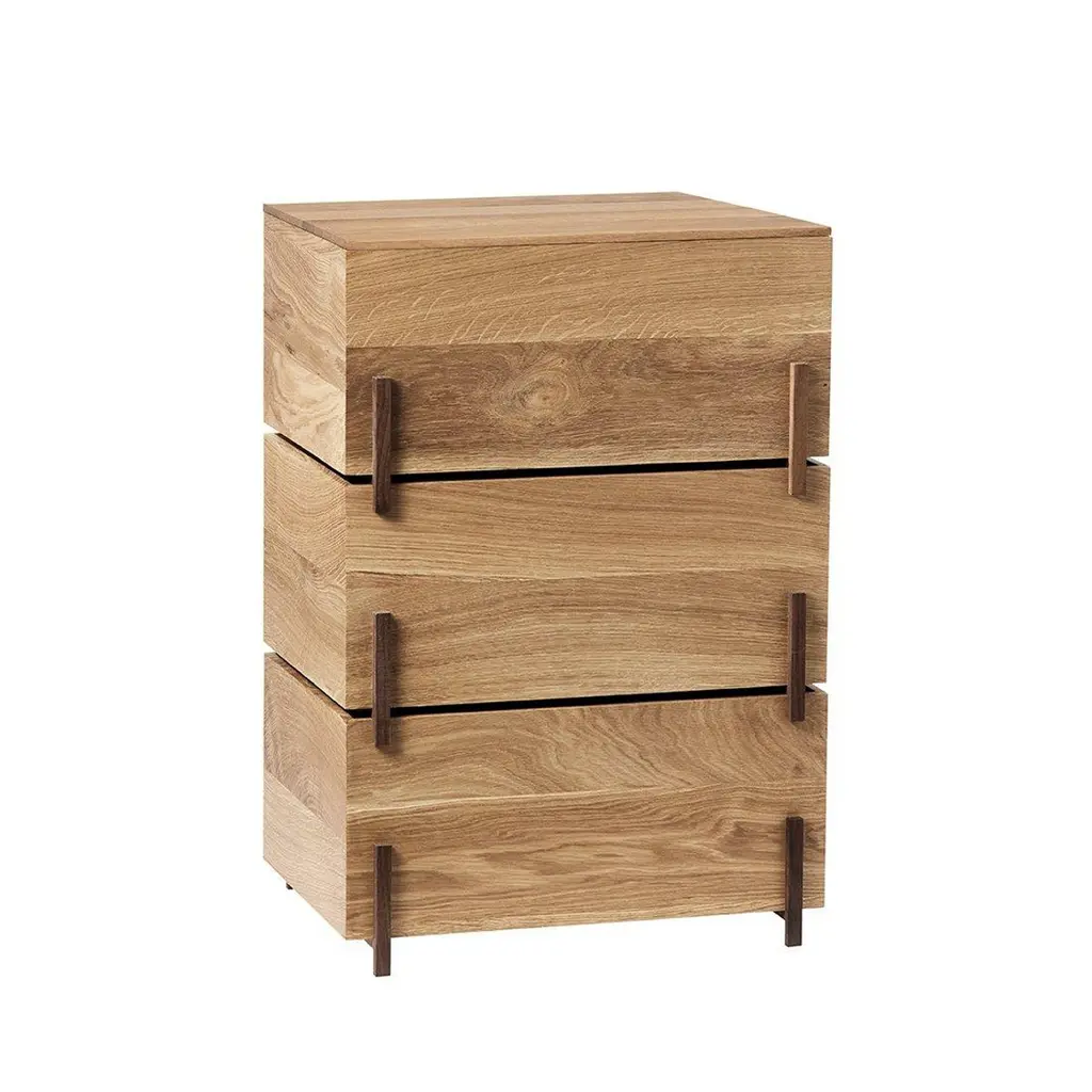 Set of 3 stack storage box by Kristina Dam StudioMaterials: Solid oak & walnut with oil treatment.Dimensions: 34 x 50 x H 67.5 cm.Stack storage box is a stylish and functional storage box set consisting of 3 decorative boxes. Crafted from solid oak and dark oiled walnut, the storage boxes trademark is the unique clean-lined look.We all need storage space in our home – stack storage box is the perfect way to store your accessories in style. Bring effortless style to your home with these modern, practical, and stackable storage boxes by Kristina Dam Studio. Featuring 1 spacious box, the storage unit is multifunctional and can be used everywhere in your home, from the children's room to store their toys; in the bedroom to keep clothes; to the living room for storing magazines. Designer's BiographyKristina Dam graduated from The Royal Danish School of Fine Arts, Architecture and Design in Copenhagen. In her designs, you will find her great love for architecture and minimalistic graphic lines.Everything originates from Kristina’s passion for design and art. She will find her inspiration when traveling, browsing Pinterest, blogs, Instagram, and talking to people.Her first product – a series of limited edition illustrations – quickly became a favorite in Scandinavian design stores, magazines, and homes. Today Kristina Dam Studio has developed into a design powerhouse of furniture and accessories. Two collections are launched every year and we collaborate with upcoming as well as established designers.Kristina Dam Studio was founded by graphic designer and architect Kristina Dam in 2012. The initial design idea for the studio was to create industrial designs that had a more art-based approach. The idea of making art and interior design merge, both in furniture, accessories, art prints, and illustrationsWe call our design approach "Sculptural Minimalism". Designs by Kristina Dam Studio are graphic and architectural with a high level of detail and excellent craftsmanship. Furniture from Kristina Dam Studio is mostly made from natural materials. We believe that mastering the monochromatic palette enables us to create timeless and enduring designs. Distinct and beautiful - simplicity with an attitude. Honest materialsWe only use honest, genuine, natural, and carefully selected materials – and we treat them with respect. The majority of our collection is produced within the European Union. Our love for genuine materials is a part of our Nordic design inheritance – a legacy we take very seriously. Sculptural MinimalismThe major lines in the designs are graphic and architectural. A high level of detail and pristine craftsmanship are key are well. Kristina Dam Studio furniture pieces are assembled with spigot joints and dowels and produced in natural materials. You’ll find the same love for details in all of your designs.A sculptural approach to designKristina Dam Studio aims to design products with a sculptural approach. Designs that have character, style, and a bold expression that will add something extra to your interior. With each collection, at least one new sculpture is launched. That sculptural quality and approach are visible in all our designs.