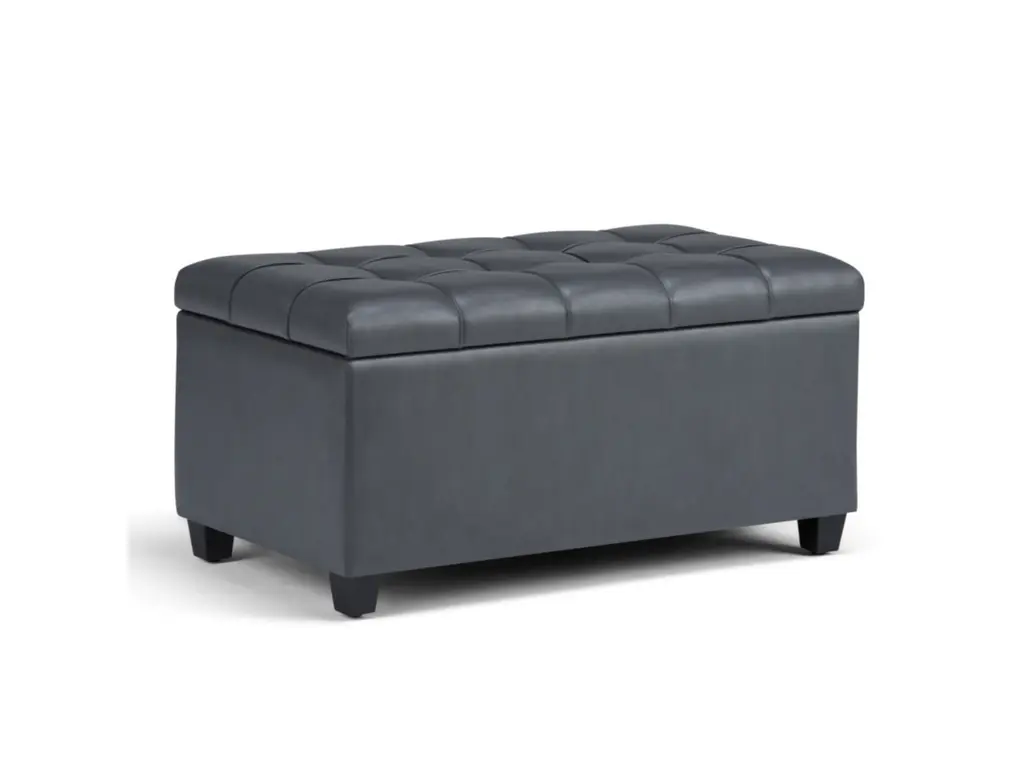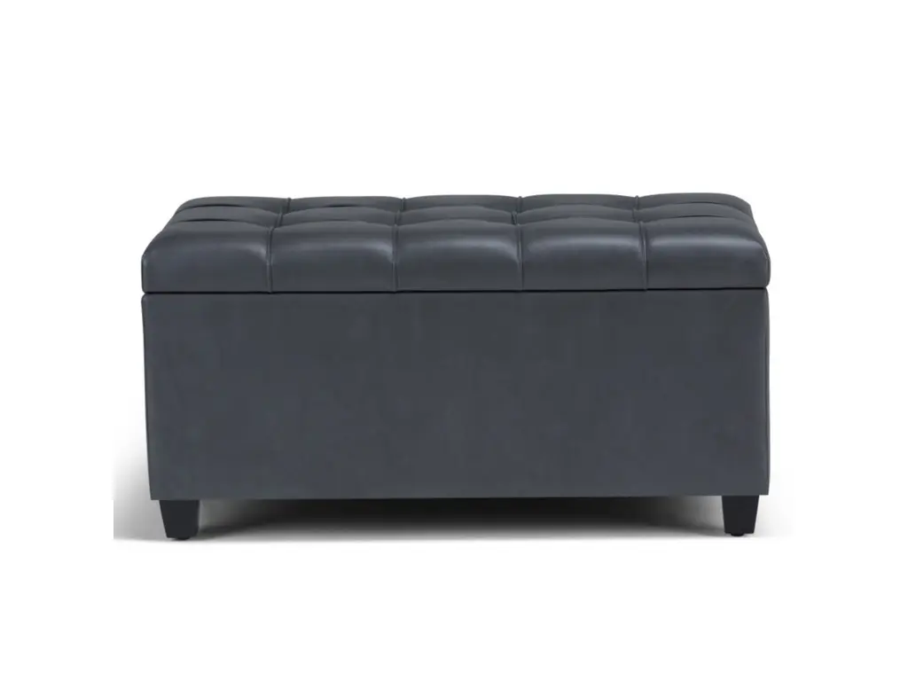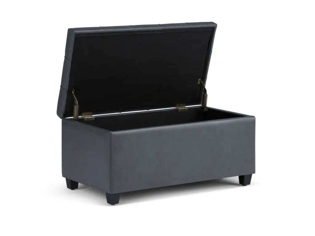 Sienna 34 Inch Wide Transitional Rectangle Storage Ottoman Bench In Stone Grey Faux Leather