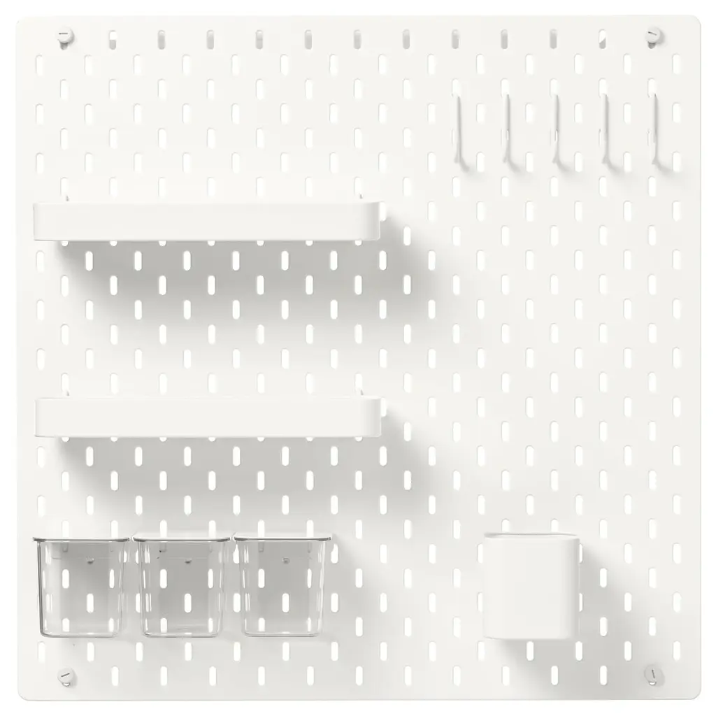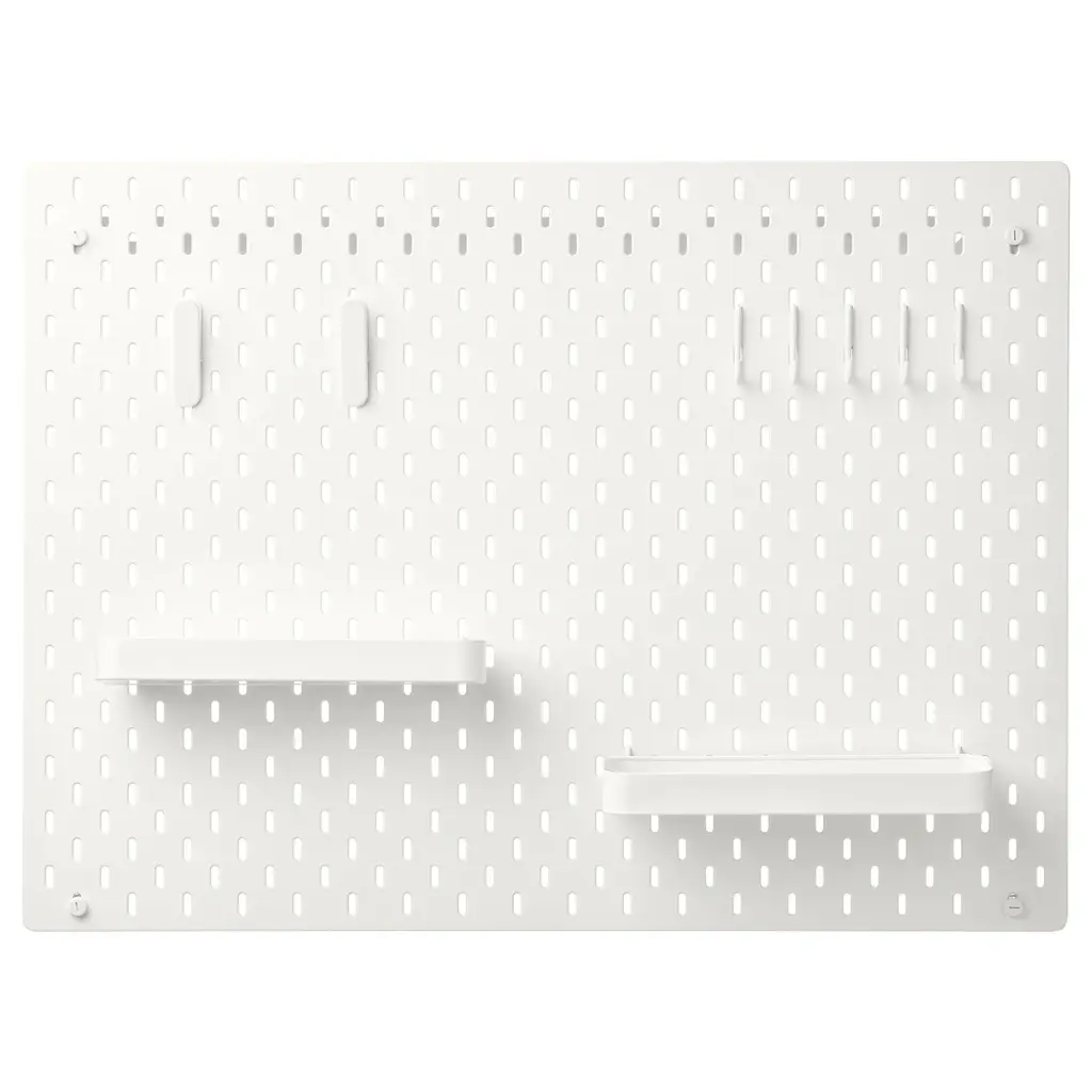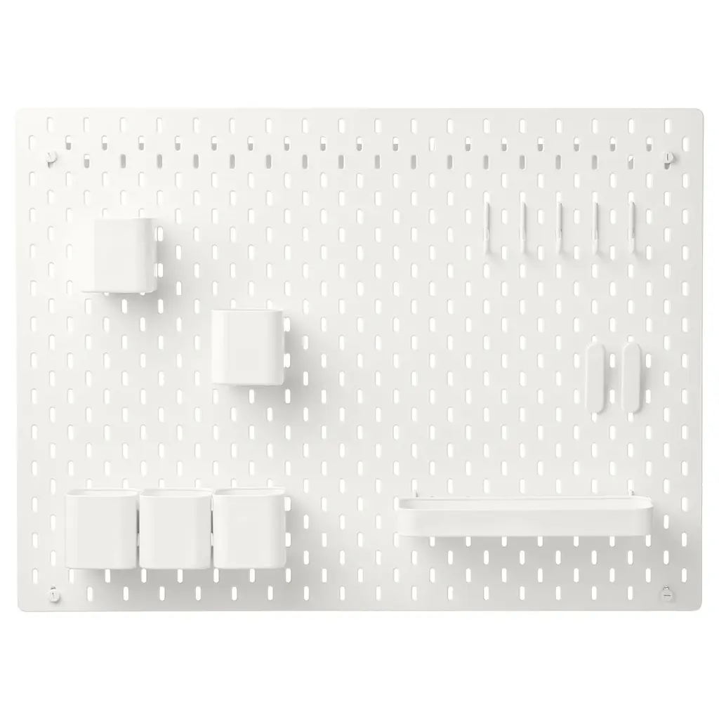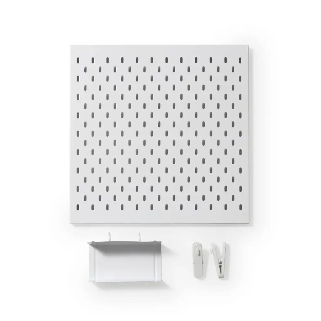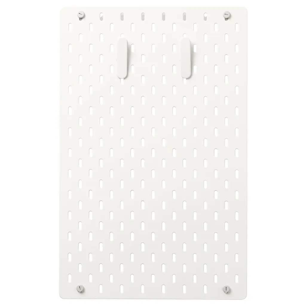 SKÅDIS Pegboard - white 14 ¼x22 ". Choose the accessories from the SKÅDIS series that suit your needs and create a personal storage combination. You can place the pegboard on a wall – or fix it to your desk or side of a wardrobe by completing with connectors that are sold separately.