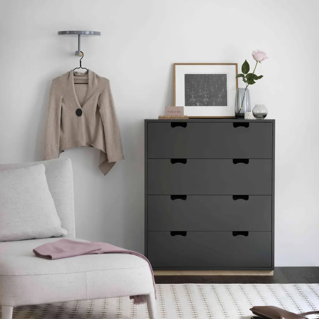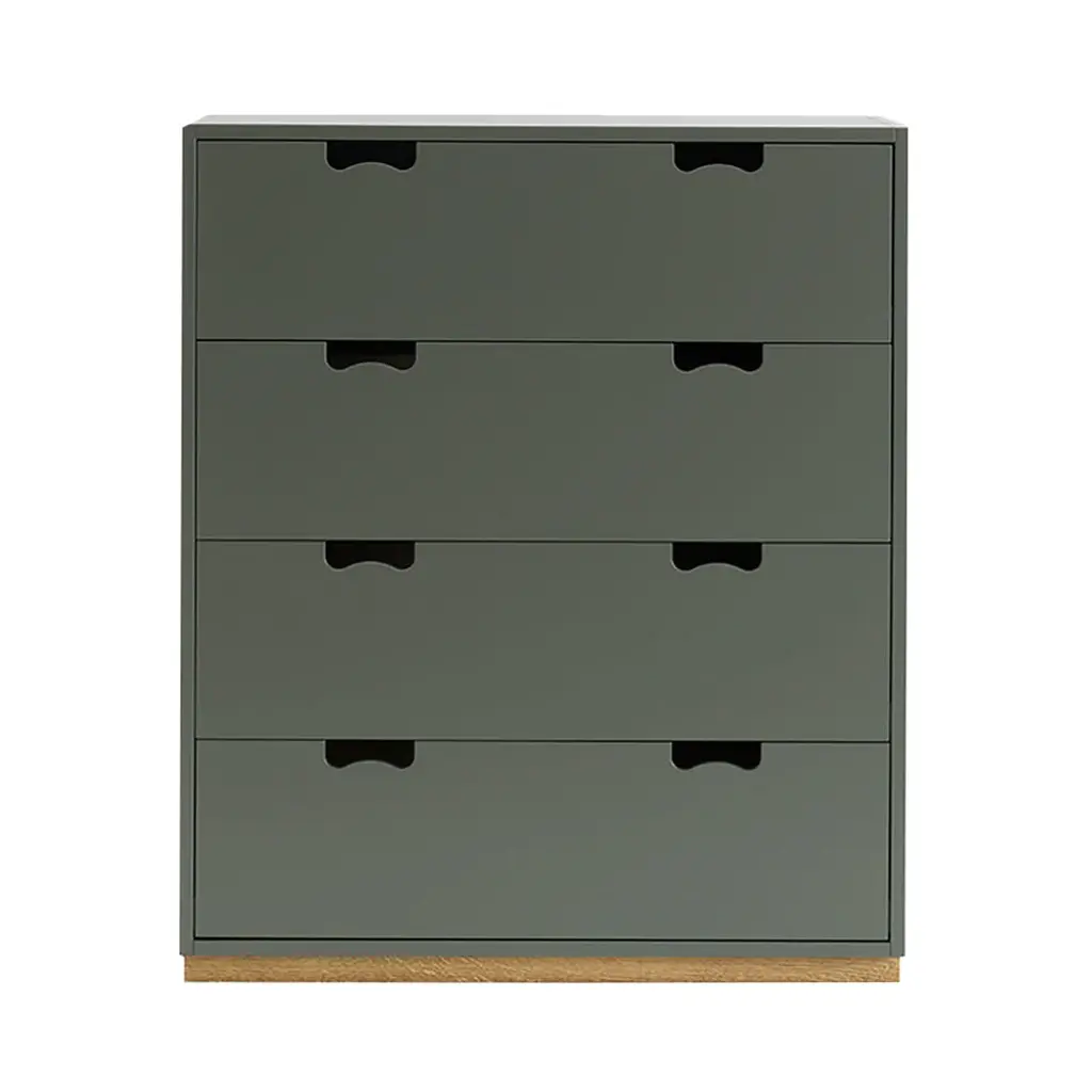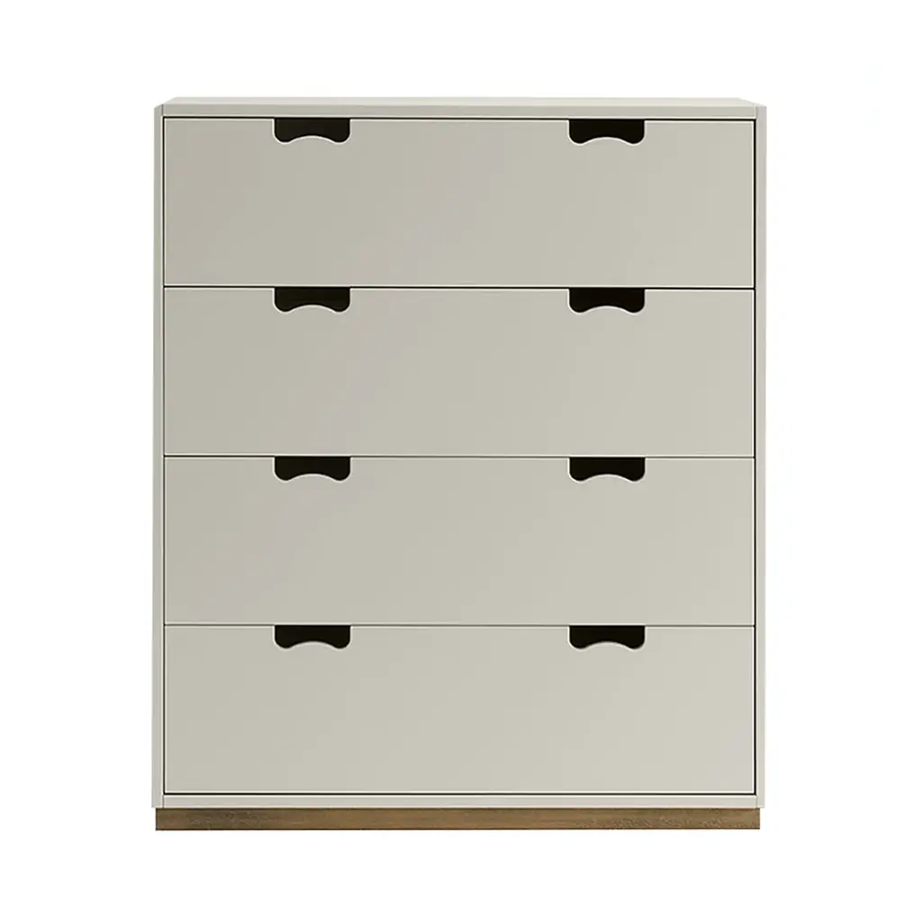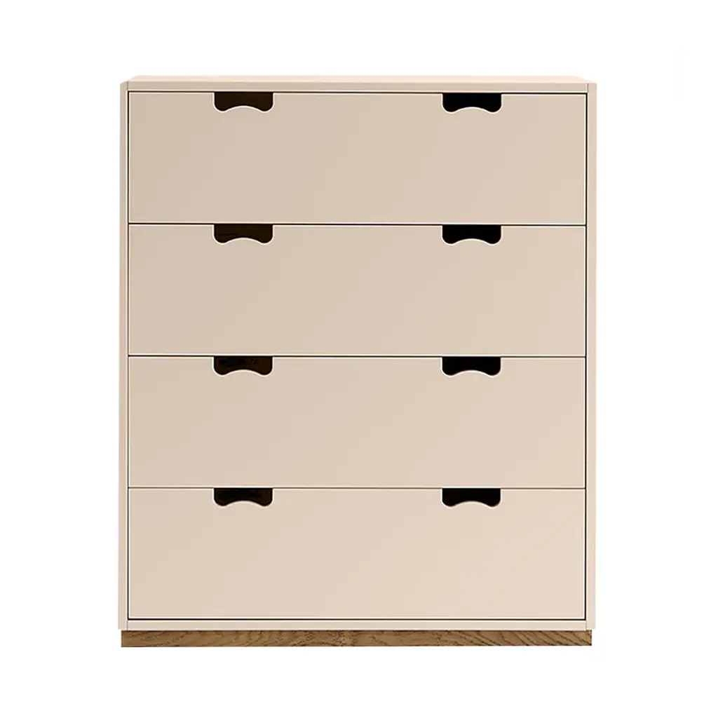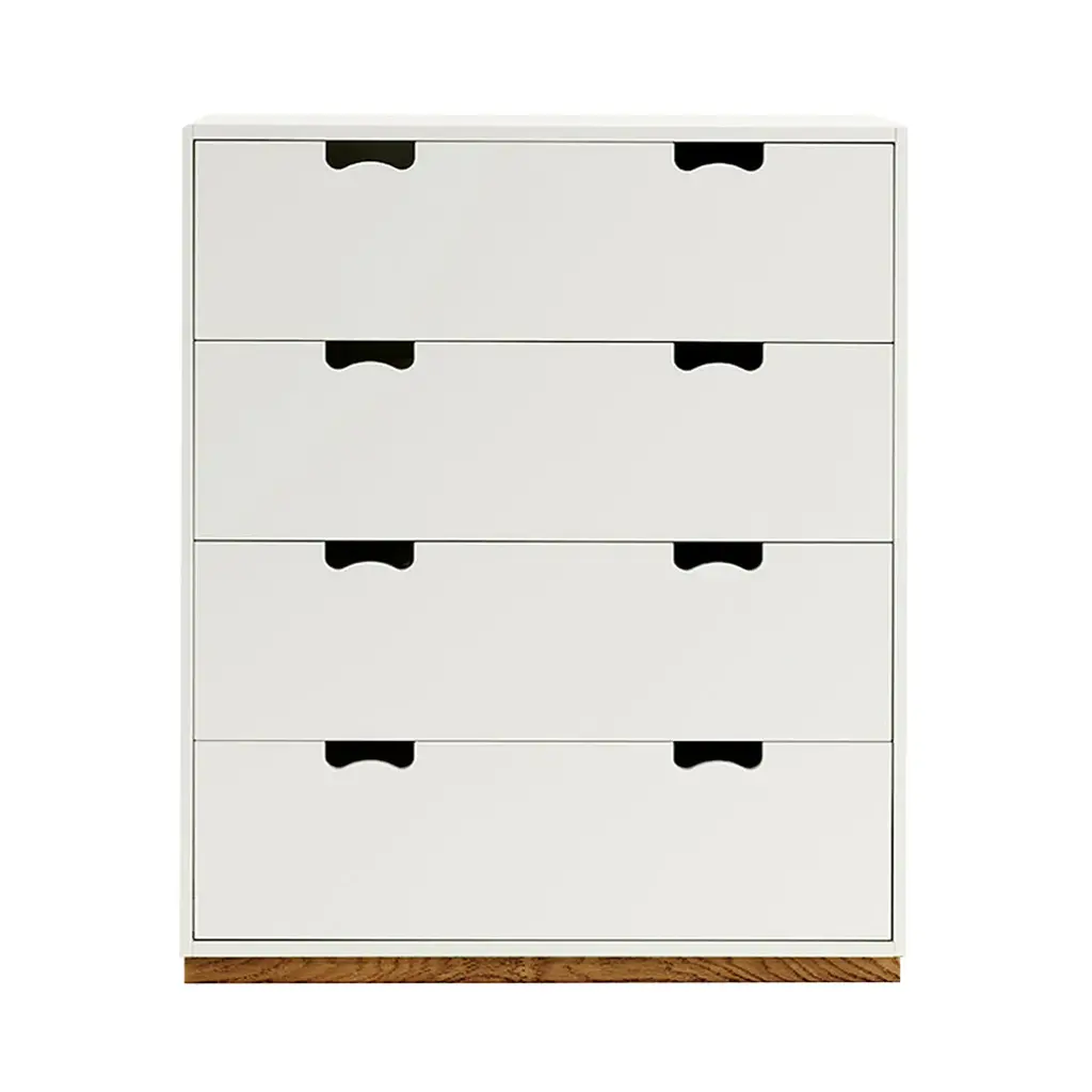 Hailed as a Swedish design classic, Asplund's storage unit with drawers was first unveiled by Thomas Sandell and Jonas Bohlin in 1994. The concept is purposely simple, with cutout handles providing both a decorative element and the ease of a comfortable grip. Snow A features wide soft-closing drawers in a lacquered MDF cabinet available in a range of tempered Nordic colors, with a contrasting natural birch base. Production takes place in the small town of Tibro in southern Sweden, with its long furniture-making tradition, and Snow is still fundamentally handcrafted and made to order. Elegantly functional alone or in combination with other companion collection pieces; fixing to the wall is recommended.