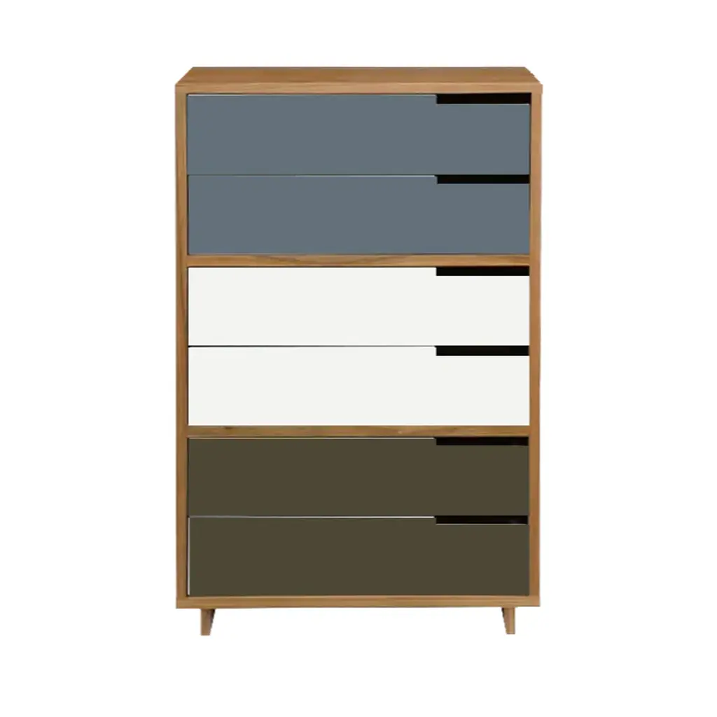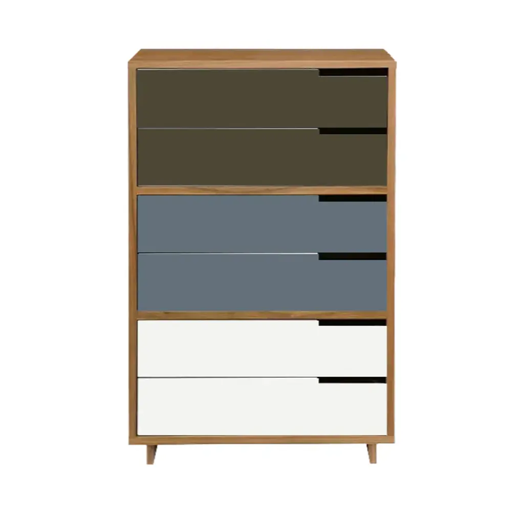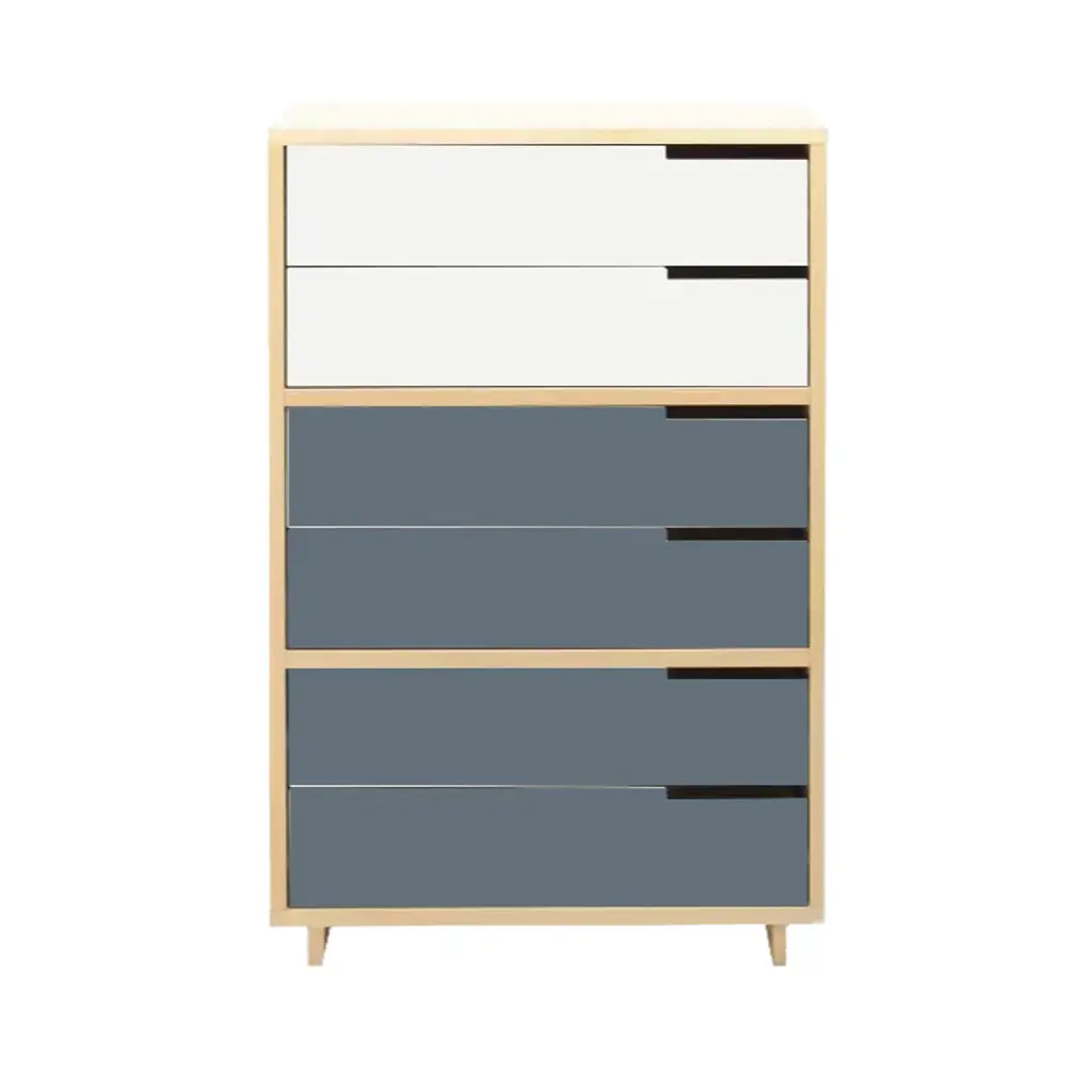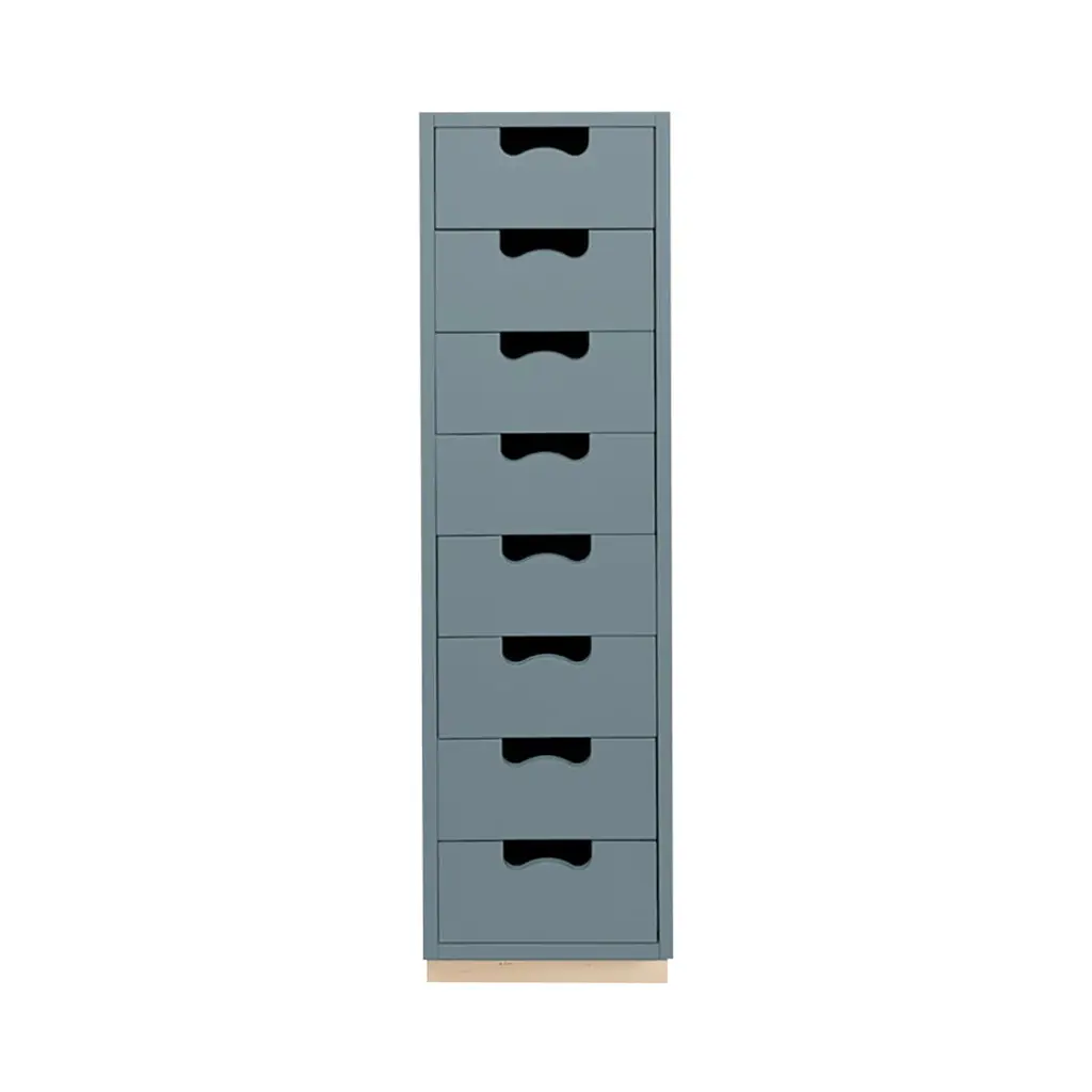 A tall unit with deep storage drawers, Snow J follows the template of Asplund's storage collection considered as a 20th century Swedish classic. Thomas Sandell and Jonas Bohlin's concept is strikingly simple, signified by the cutout handles used as both a decorative element and to give a comfortable grip. The lacquered MDF cabinet with soft-closing drawers comes in a select range of Nordic-influenced tones set on a contrasting natural birch base. Handcrafted and made to order in the small town of Tibro in southern Sweden, with its long furniture-making tradition, and meant to last for generations; affixing unit to the wall is recommended.