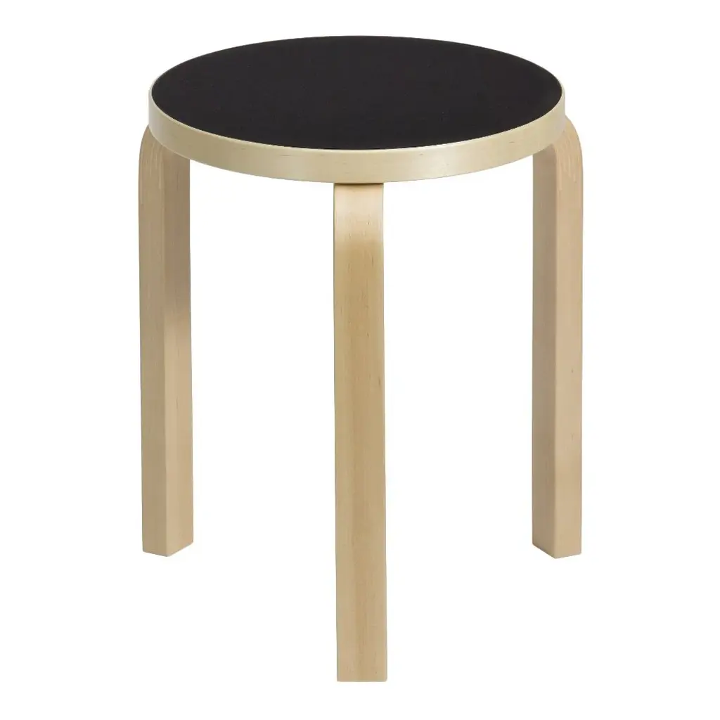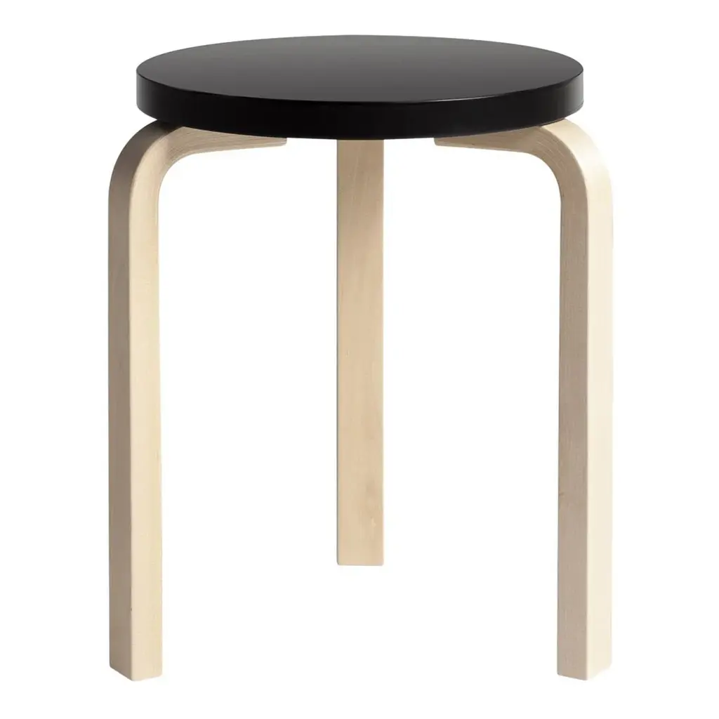 Alvar Aalto's iconic Stool 60 is the most elemental of furniture pieces, equally suitable as a seat, a table, storage unit, or display surface. The legs are mounted directly to the underside of the round seat without the need for complicated connecting elements. Thanks to its geometry, the stool can be stacked to save space in a spiralling tower sculpture. Manufactured in 42 production steps at the A-Factory in Turku, Finland, Stool 60 is available in a wide variety of colors and finishes. Several million units of Stool 60 and its four-legged cousin, Stool E60, have been sold, making it one of the most cherished products in the history of design.
