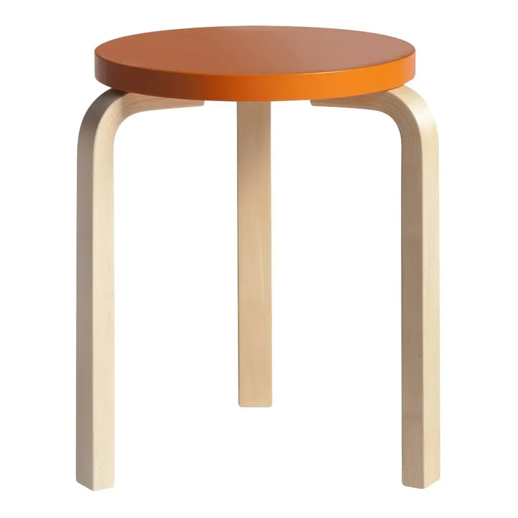 Alvar Aalto's iconic Stool 60 is the most elemental of furniture pieces, equally suitable as a seat, a table, storage unit, or display surface. The legs are mounted directly to the underside of the round seat without the need for complicated connecting elements. Thanks to its geometry, the stool can be stacked to save space in a spiralling tower sculpture. Manufactured in 42 production steps at the A-Factory in Turku, Finland, Stool 60 is available in a wide variety of colors and finishes. Several million units of Stool 60 and its four-legged cousin, Stool E60, have been sold, making it one of the most cherished products in the history of design.