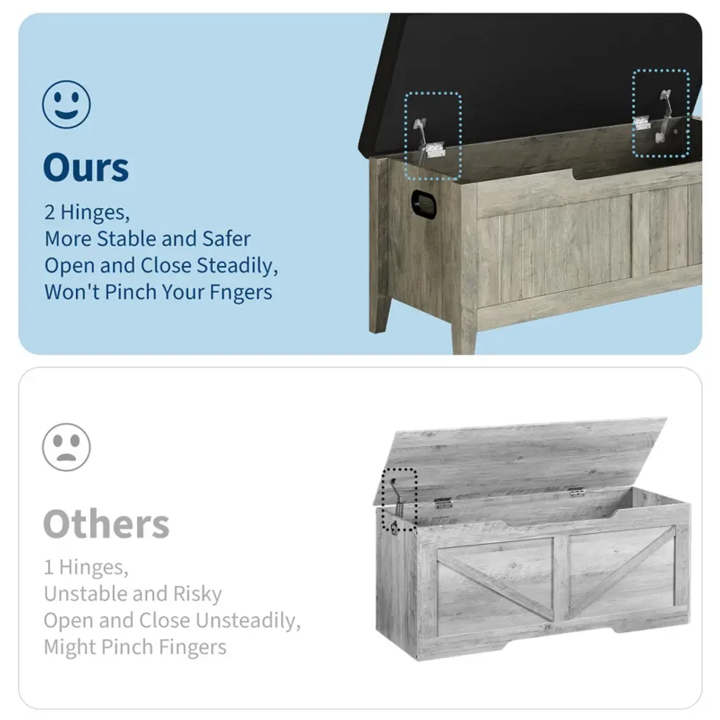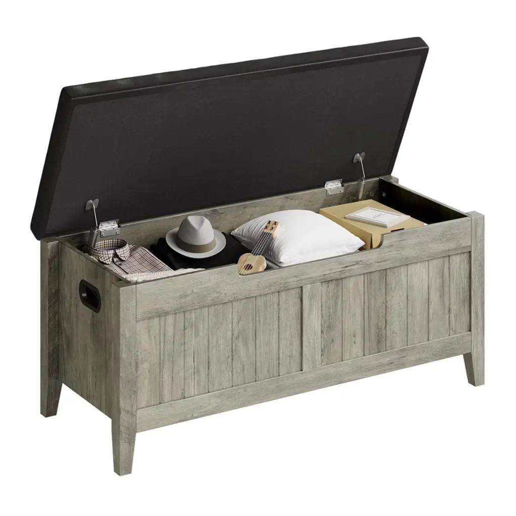Storage Chest, Storage Trunk With Cushion Seat, 2 Safety Hinges, Storage Bench, Wooden Storage Organizer, Shoe Bench Easy Assembly,grey