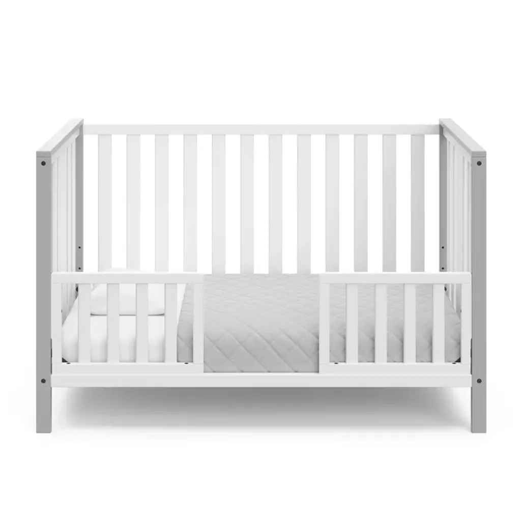Over 75 years of quality craftsmanship, complete nursery functionality, and a fresh two-tone design come together with the Storkcraft Modern Pacific 5-in-1 Convertible Crib. With its clean lines, signature two-tone look, and ability to transform from a baby crib into a daybed, toddler bed, and full-size bed, the Storkcraft® Modern Pacific is the perfect choice to bring your family’s dream nursery to life. The Modern Pacific is crafted from pine wood, engineered wood, and wood composites. The Storkcraft Modern Pacific 5-in-1 Convertible Crib is GREENGUARD Gold Certified — Certified products are screened for more than 10,000 chemicals and VOCs known to pollute indoor air. Also, the Modern is JPMA Certified — meaning it’s been expert tested by third-party, accredited laboratories to meet or exceed all of the applicable category voluntary and mandatory safety standards. Designed to adapt to your growing baby, the Modern is equipped with an adjustable mattress support base with 3 different height options. To support your child’s journey from babyhood to toddlerhood and beyond, the Modern is able to be converted from a crib to a toddler bed (compatible with 1 or 2 toddler guardrails, each sold separately), daybed, and full-size bed with headboard and optional footboard (compatible full-size conversion kit sold separately). The Storkcraft Modern Pacific 5-in-1 Convertible Crib is designed to accommodate any standard full-size crib & toddler mattress (mattress sold separately – we recommend any Graco crib mattress to pair with your Modern). Combining a modern, universal look with ultimate nursery storage, the Modern Changing Table features 2 storage cubbies and a large, spacious storage bin on the bottom. The Modern is GREENGUARD Gold Certified — meaning it’s been screened for over 10,000 chemicals and VOCs known to pollute indoor air. Designed to adapt to your growing child, the Modern Changing Table features a changing topper (we recommend the Graco Premium Contoured Changing Pad to pair with it) that can be easily removed when your child has grown — allowing you to continue using this stylish furniture piece as a bedroom storage unit, for years to come. In addition to being GREENGUARD Gold Certified, the Storkcraft Modern Changing Table with Storage and Removable Topper is JPMA Certified — meaning it’s been expert tested by independent laboratories to meet the highest standards for your child’s safety. Storkcraft is the proud recipient of the Parent Tested Parent Approved (PTPA) Seal of Approval for nursery and children’s bedroom furniture, and the 2023 Women's Choice Award for 9 out of 10 Recommended Baby & Kids Furniture. Backed by a 1-year limited manufacturer’s warranty. Assembly required. Mattress sold separately. Graco Premium Contoured Changing Pad pad sold separately