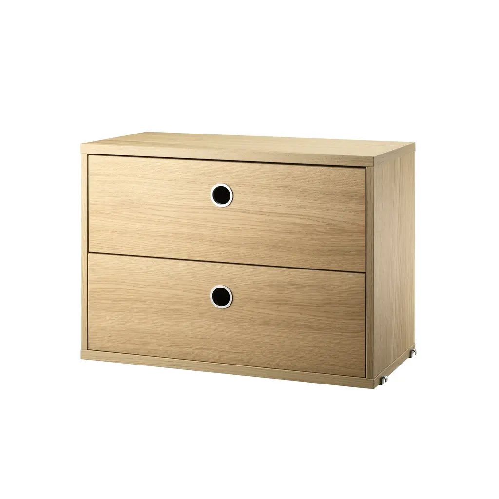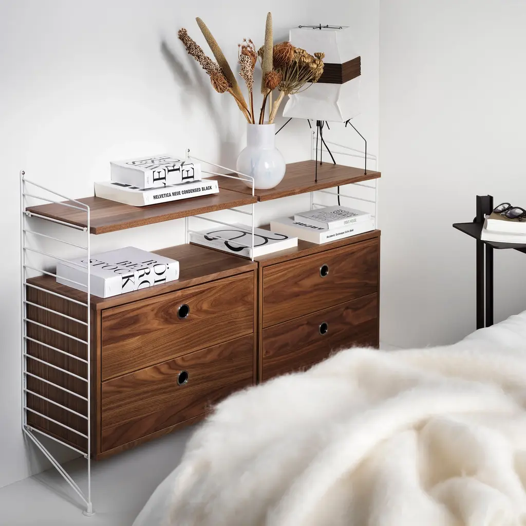 Available in 2 sizes, this double-drawer chest adds another desirable modular component to the String System. Available in the collection’s full range of woodgrain veneer and painted finishes, it’s a versatile storage unit for use in a bedroom, office or media room. First introduced in 1949 by the late Nisse Strinning, String is a design classic that has stood the test of time.