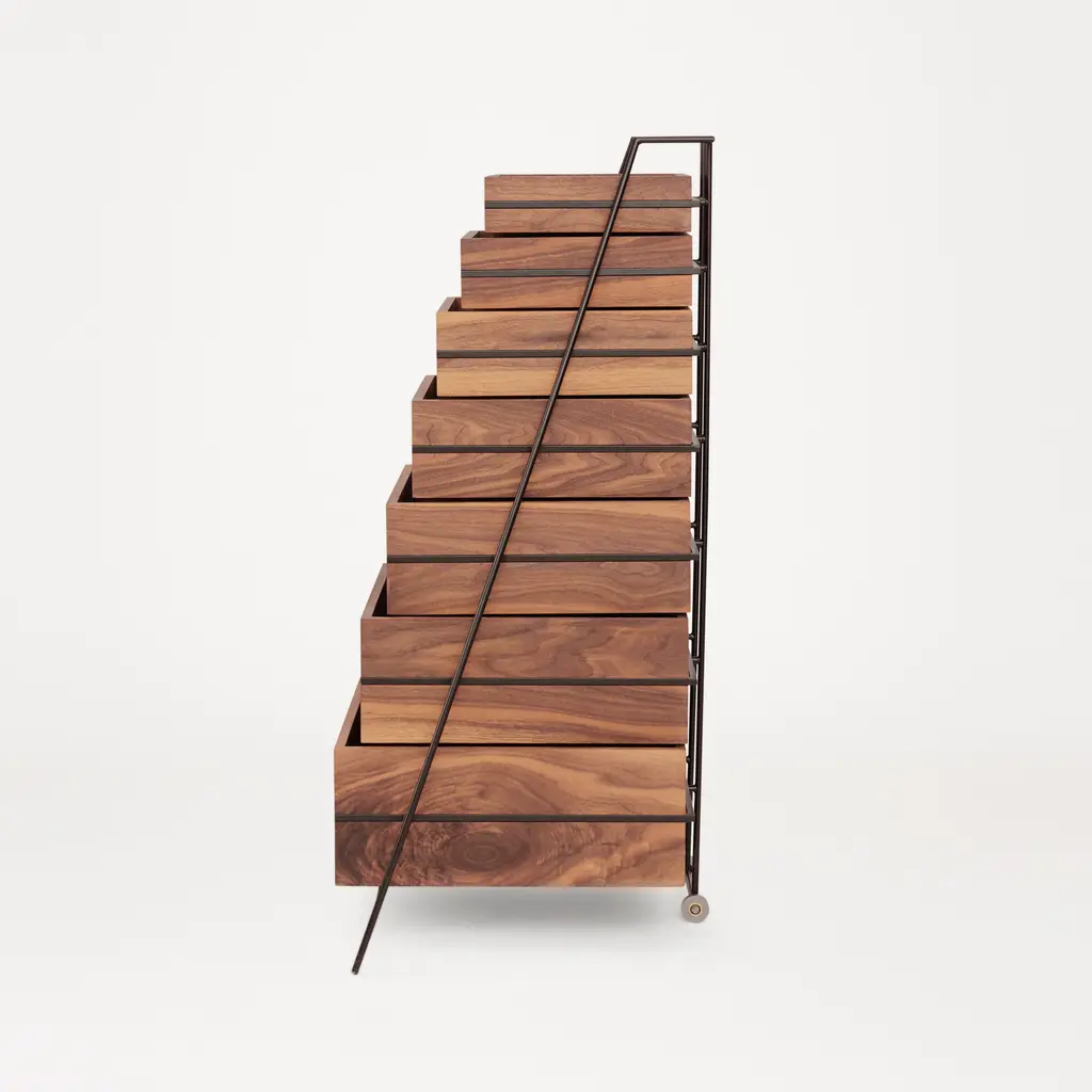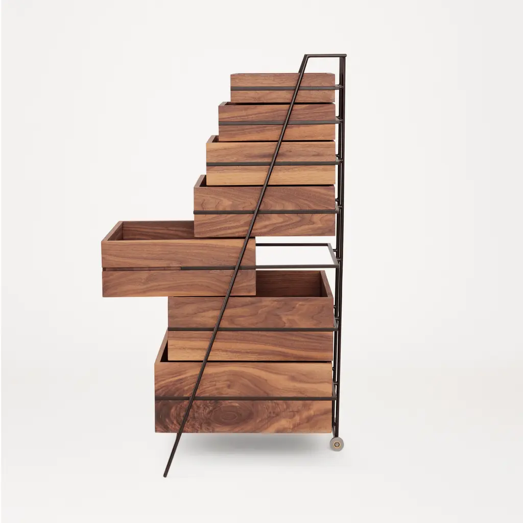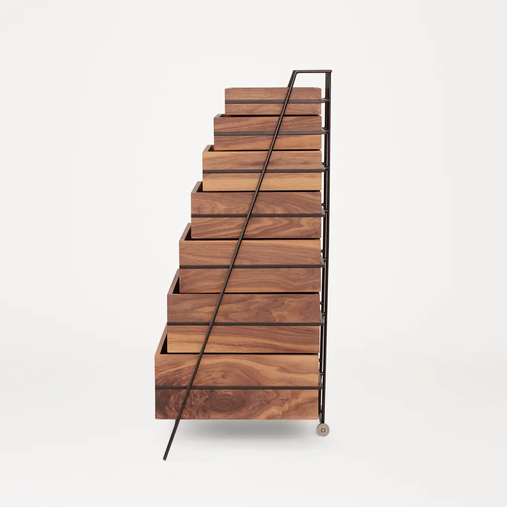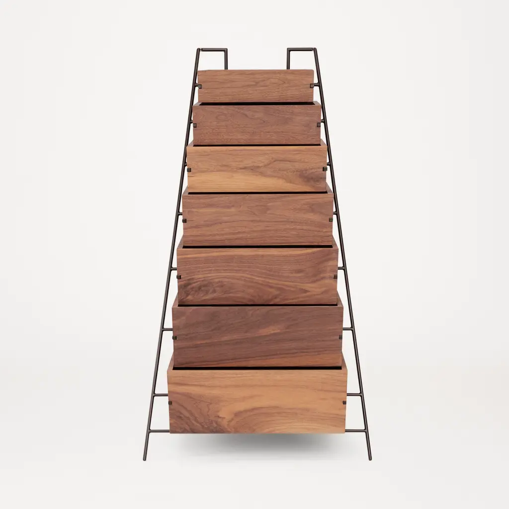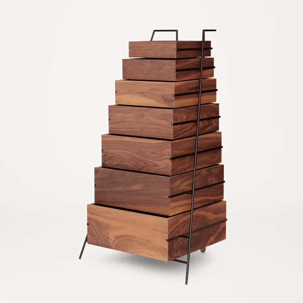 Revamping classic storage solutions, the Sutoa drawer is as practical as it is elegant. Tokyo-based designer Keiji Ashizawa created Sutoa (which means “to contain” in Japanese) for Danish design brand Frama. Clever and flexible, this storage unit features 7 shelf boxes in different sizes. Each shelf fits into one another, to occupy minimal space while moving house or transporting the unit from one room to another. Handles and wheels also make moving even filled shelves as easy as possible. Sutoa comes with a minimalist steel frame and solid oak shelves that are conveniently stackable and easy to remove individually. The system provides generous storage space as well as a stylish solution to organize various items. Perfect for bedrooms, home offices, and other workspaces. The Sutoa Drawer is made to order, please allow 8 weeks for delivery.