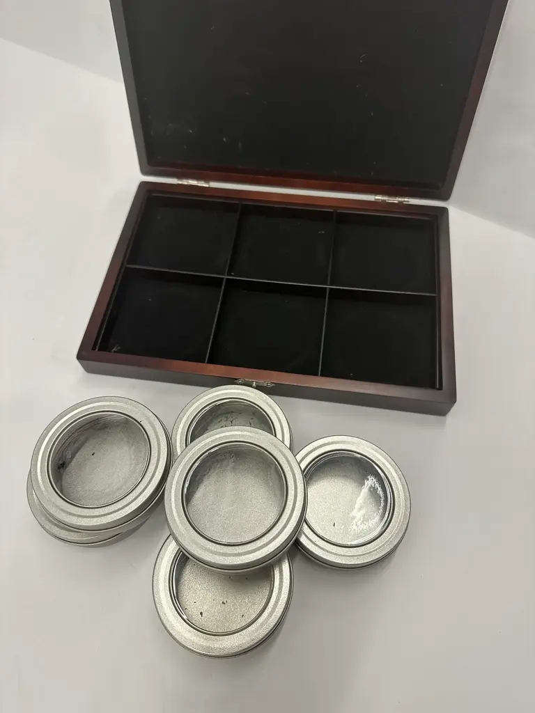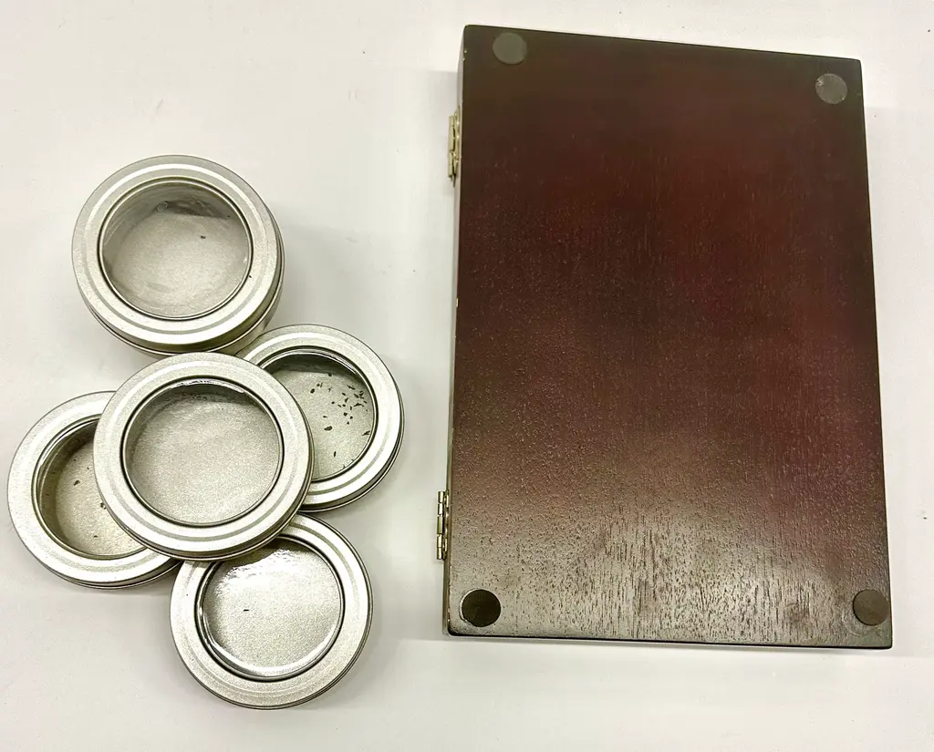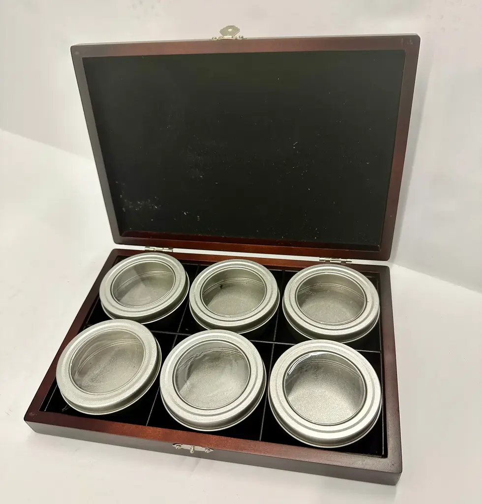 Tea Chest Wood Box Empty Set 6 Canisters Presentation Lidded