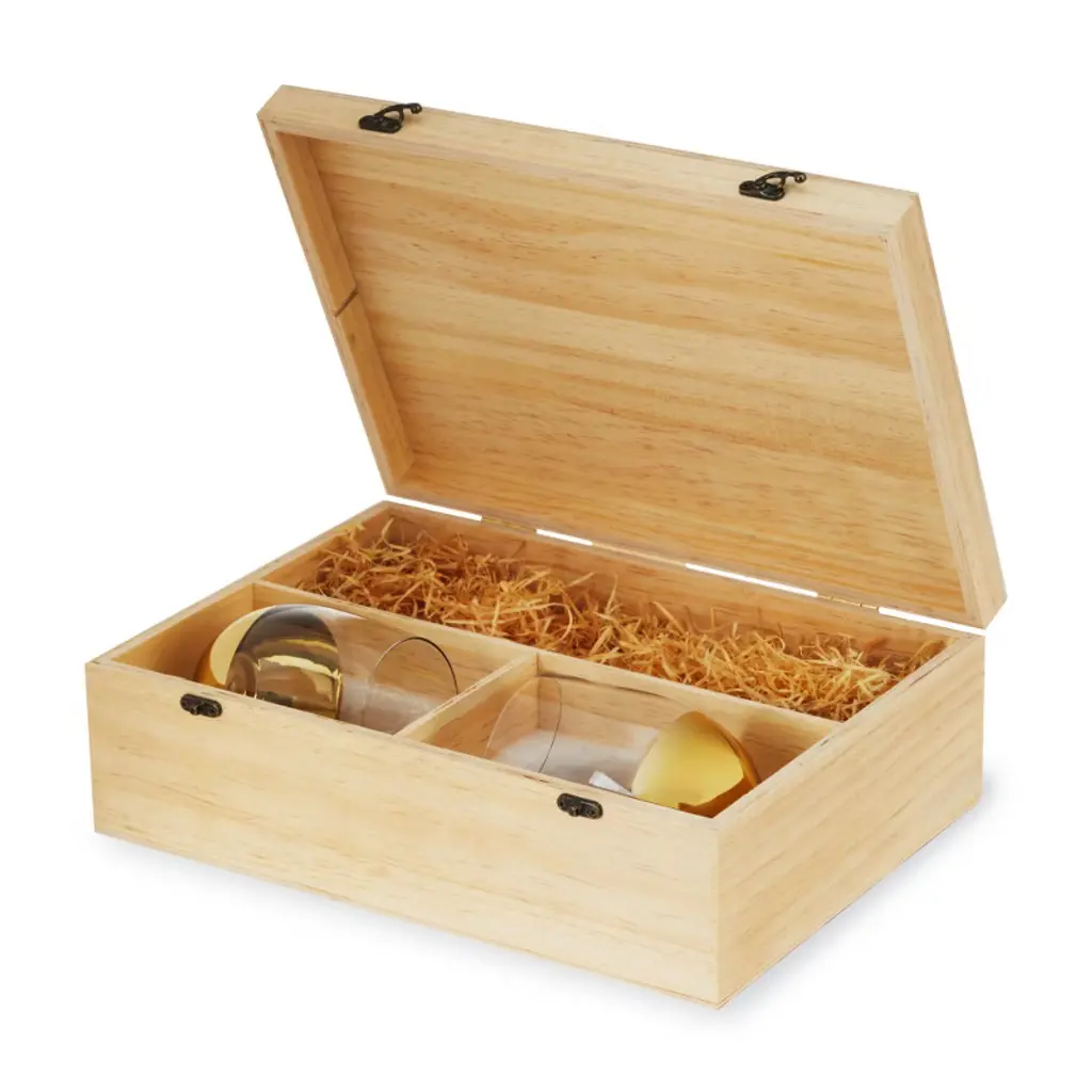 An exquisite blend of rustic charm and functional design, this empty Hand-Crafted Wooden Tea box is designed to hold six varieties of tea. The tea presentation box is designed to preserve freshness of teas stored within. The wooden construction lends an air of timeless elegance, ensuring this box is not simply a storage unit, but a piece of decor in itself. This wooden gift box with 6 tins embodies practical functionality with a rustic aesthetic, promising a captivating unboxing experience. Hinged rectangular wood Box Opens to Inside divided spaces into 2 x 3 that perfectly holds six transparent lidded cans Approximate Dimensions: Box is 10 3/4 x 7 3/8 x 1.5 inch. Each can is 3 1/8 x 1 1/8 inch Frequently seen in retail shops, jewelry stores, art & craft shows, tradeshows, flea markets and swap meets. Repurpose to hold jewelry or other collectibles Traditional. Transitional