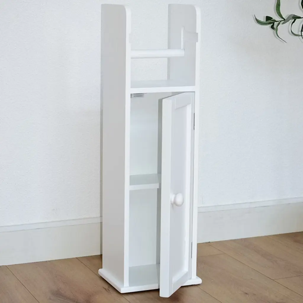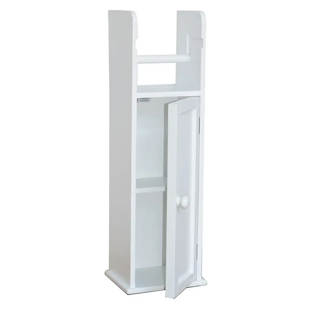 Great for a small space, the Bathroom Storage Unit keeps the essentials out of sight. With a toilet roll holder at the top, it is ideal for organizing extra rolls, washcloths and more. Made of: MDF and wood. Notes: Assembly required; assembly hardware included
