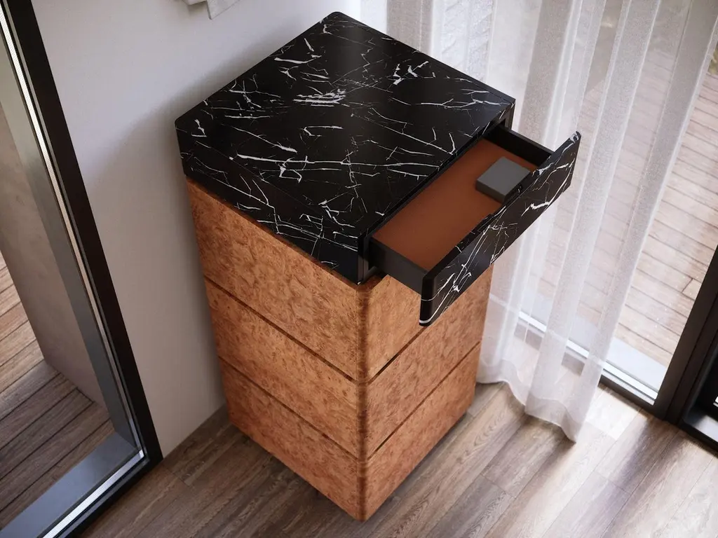 Three Columns Chestnut Burl Wood Cabinet With Black Marble Top By Ultramobili