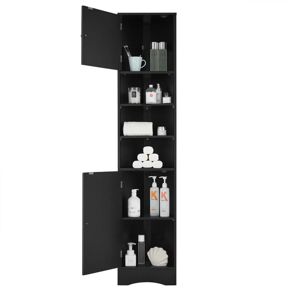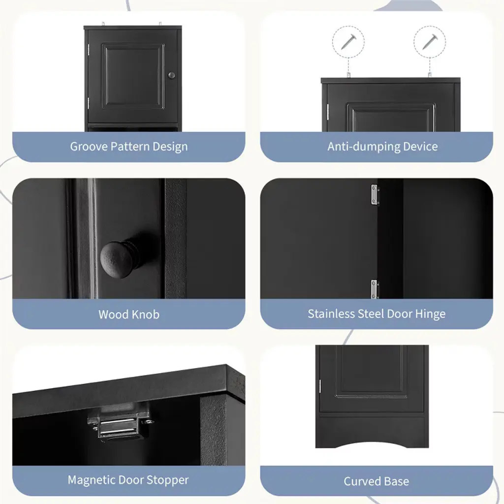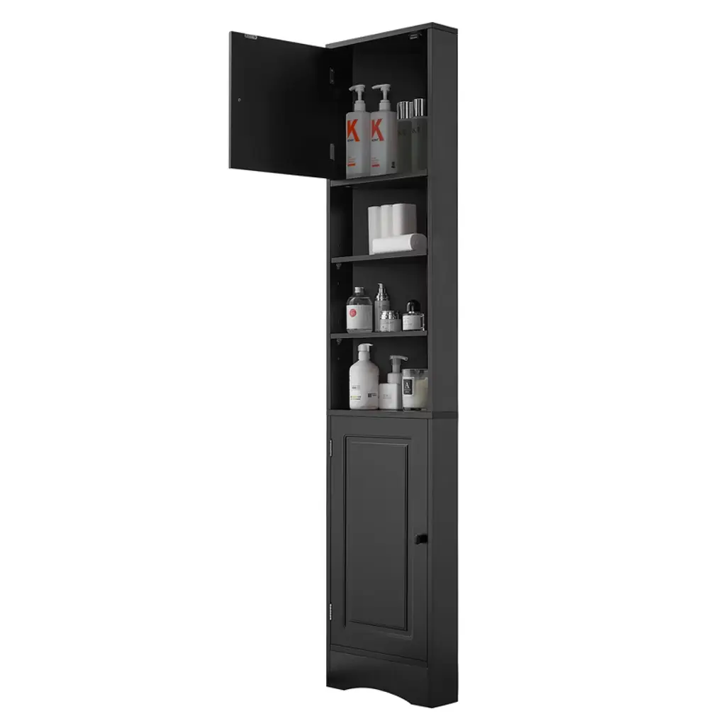 Tramull Black Corner Bathroom Cabinet With 2 Doors & Adjustable Shelves, Space-saving Tall Storage Unit, Waterproof Mdf