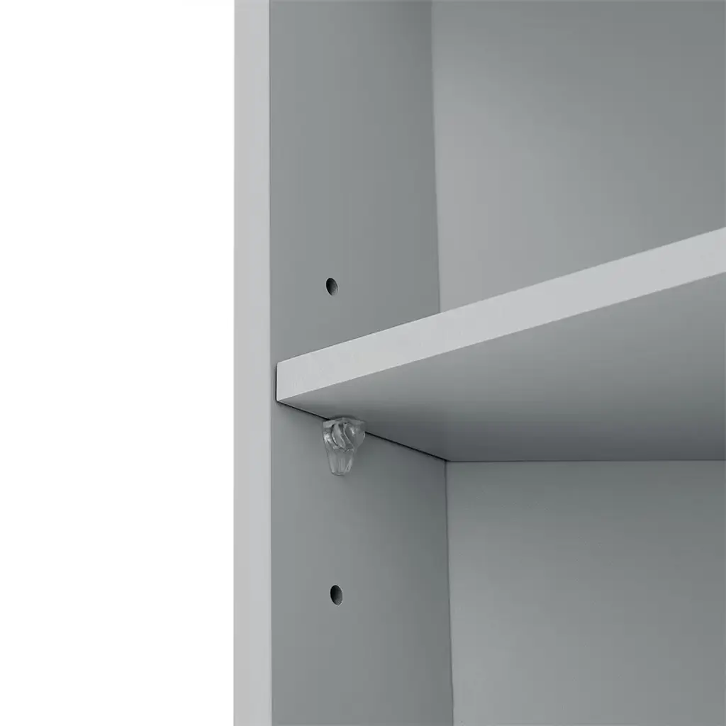 Crafted from durable MDF with a waterproof white finish, this triangular cabinet maximizes unused corner space while resisting moisture damage. The elegant design features grooved door patterns and curved base detailing, complemented by wooden knobs and magnetic closures for smooth operation. Its sturdy construction ensures years of reliable bathroom organization.