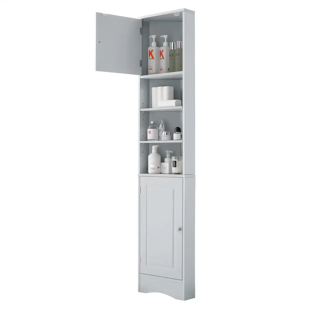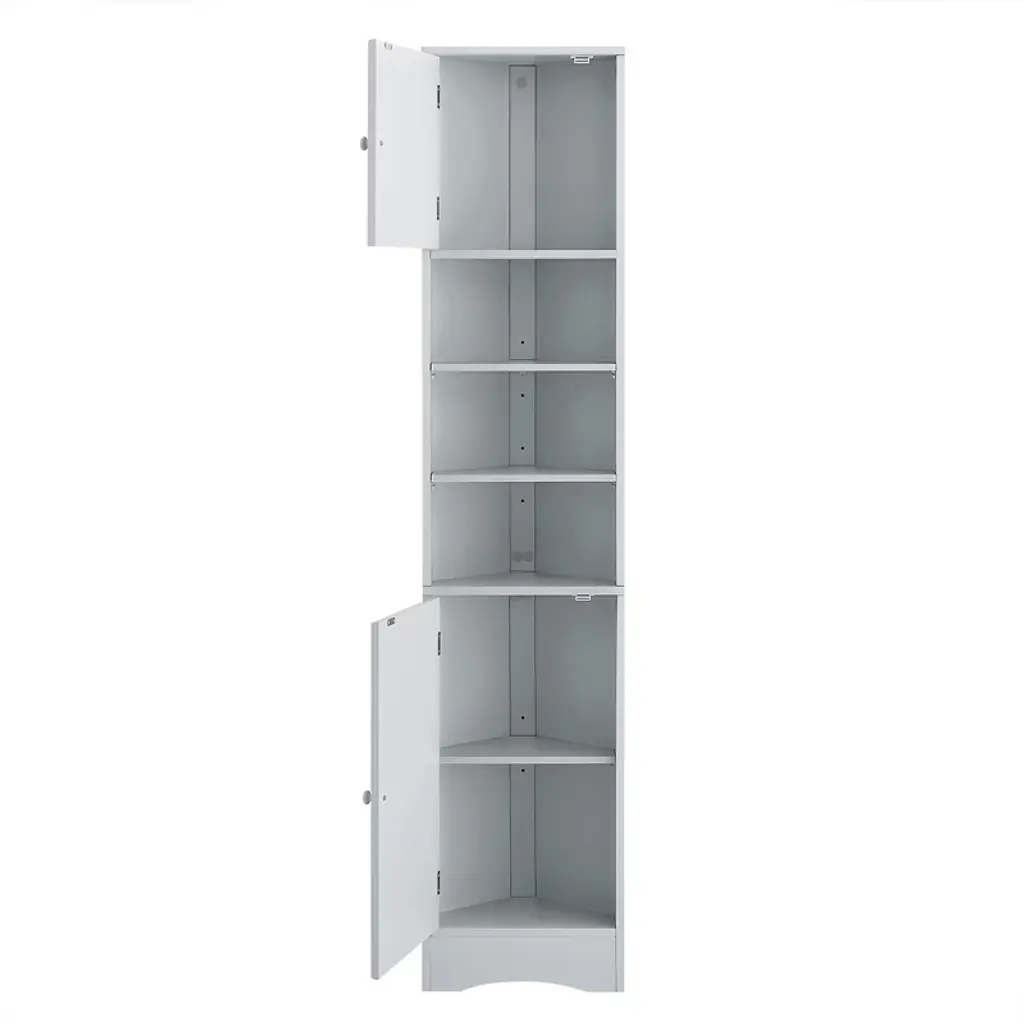 Tramull Gray Corner Bathroom Cabinet With 2 Doors & Adjustable Shelves, Space-saving Tall Storage Unit, Waterproof Mdf
