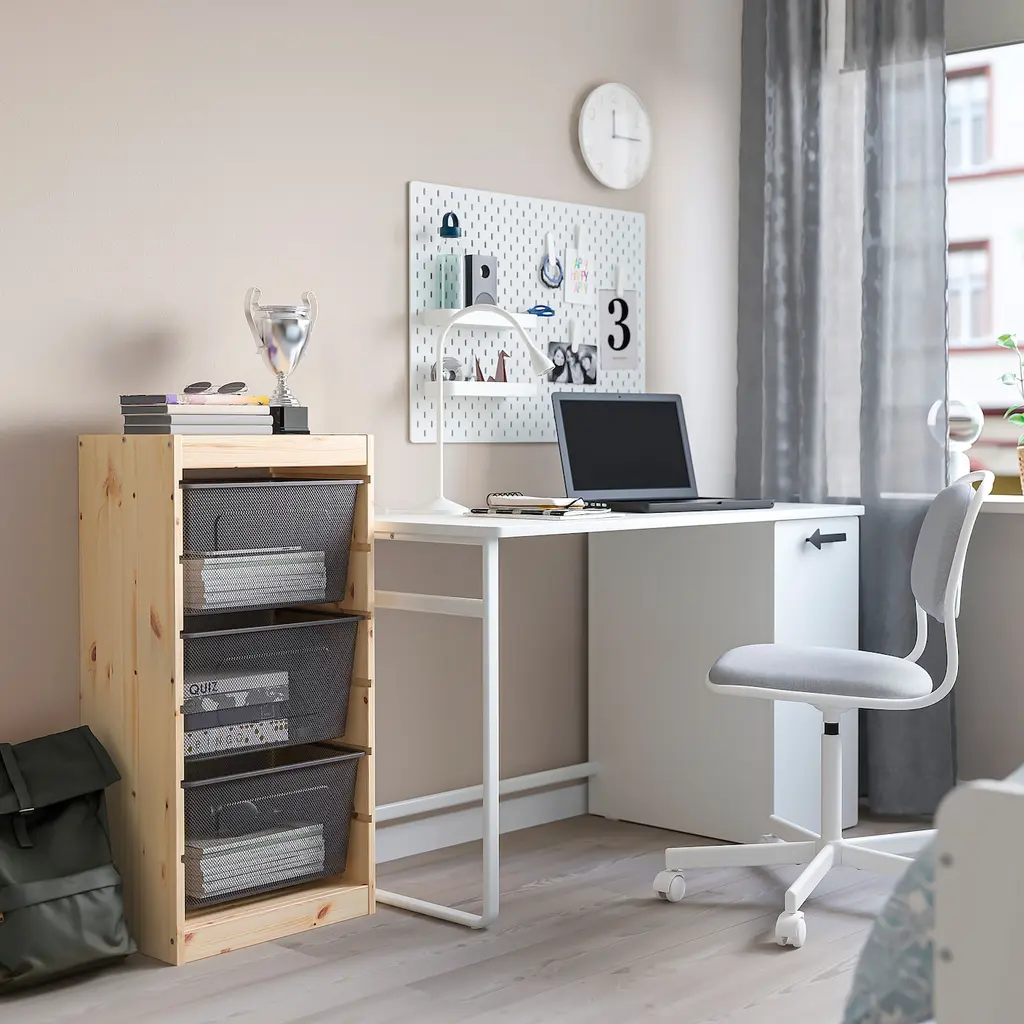 TROFAST Storage combination with boxes - light white stained pine/dark gray 17 3/8x11 3/4x35 7/8 ". With the frames and mesh storage boxes in the TROFAST series, you can customize a storage solution that takes care of big and small things, even in other parts of the home.