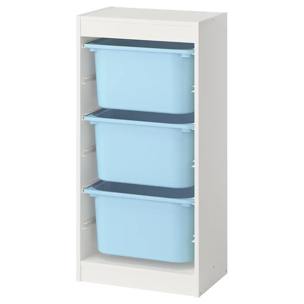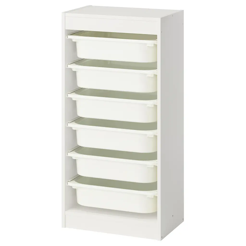 TROFAST Storage combination with boxes - white/white 13 3/8x17 3/8x22 ". This sturdy and spacious storage solution makes it easier for your child to organize and keep everything in order. Low storage makes it easier for children to reach and organize their things. Can be used with TROFAST lid.