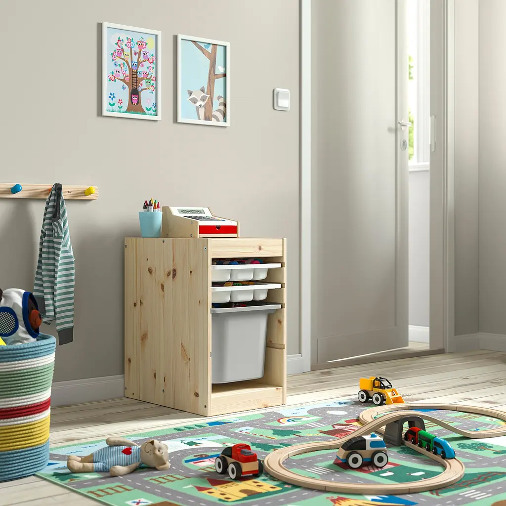 TROFAST Storage combination with box/trays - light white stained pine white/gray 12 5/8x17 3/8x20 1/2 ". This sturdy and spacious storage solution makes it easier for your child to organize and keep everything in order. Low storage makes it easier for children to reach and organize their things.
