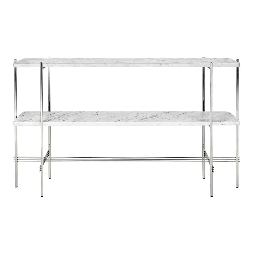 The TS Console creates a sophisticated and sculptural aesthetics for any room with its characteristic slender legs, beautifully crossing details and contrasting solid table top. The rectangular console serves equally well as a storage unit, serving station or media console, featuring either one or two table tops. The timeless TS Console by GamFratesi is extended from the classic TS Table, made for the renowned restaurant The Standard in Copenhagen, where not only its name got its inspiration but also aesthetics and material choices were found.