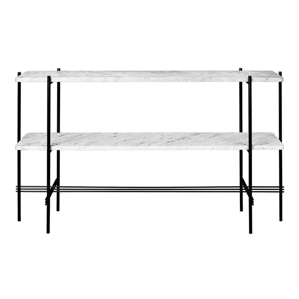 The TS Console creates a sophisticated and sculptural aesthetics for any room with its characteristic slender legs, beautifully crossing details and contrasting solid table top. The rectangular console serves equally well as a storage unit, serving station or media console, featuring either one or two table tops. The timeless TS Console by GamFratesi is extended from the classic TS Table, made for the renowned restaurant The Standard in Copenhagen, where not only its name got its inspiration but also aesthetics and material choices were found.