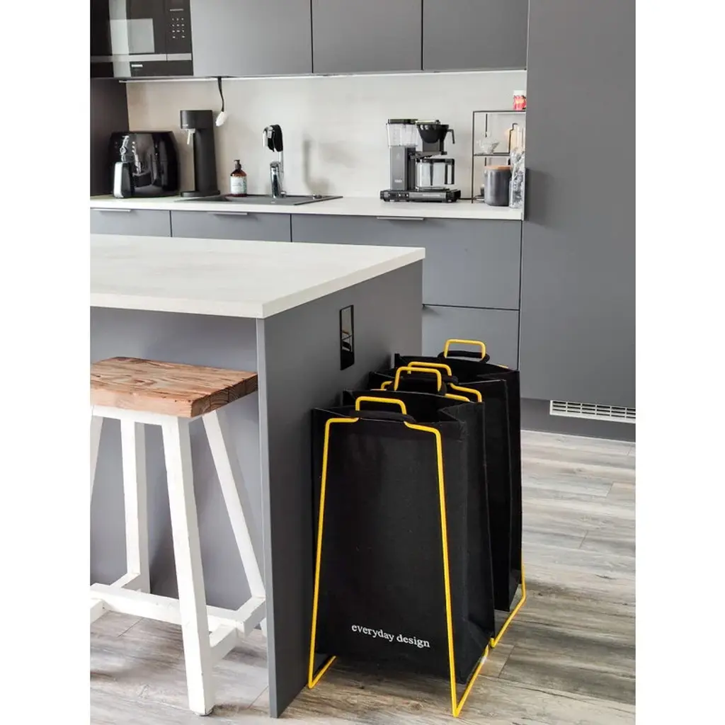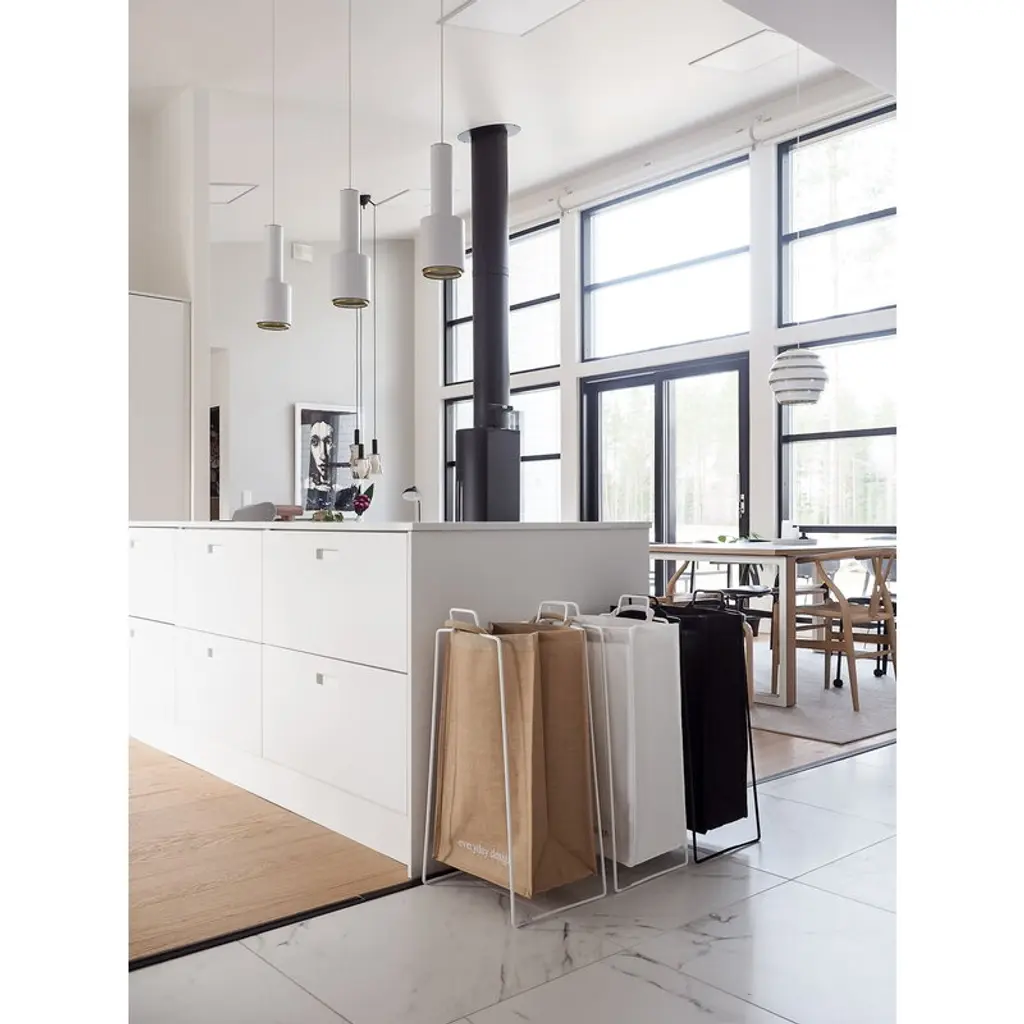 Everyday Design's Turku XL cotton canvas bag complements the look and functionality of the Turku XL recycling holder. The sustainable bag is a handy helper for collecting bottles, cardboard and other recyclable items, but it can also be used on its own as a big shopping bag, laundry basket or storage unit. Made from sturdy cotton canvas, the bag features a minimalist Everyday Design logo on the other side as well as a handy flap on the inside to hide its content from curious eyes.