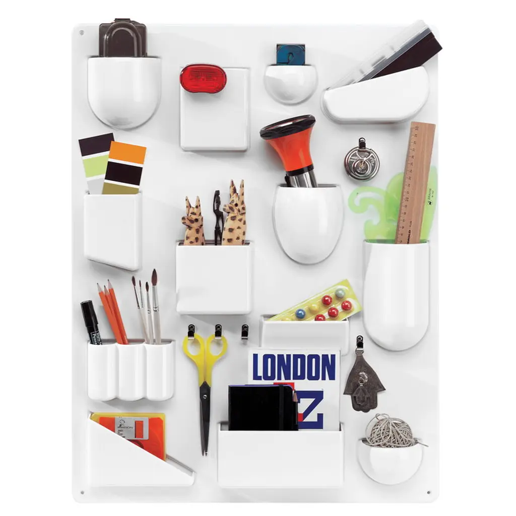 Vitra’s Uten.Silo RE II is a beautiful and practical storage unit for small items. Designed by Dorothee Becker in 1970, the Uten.Silo II organizer helps to bring order in the kitchen, bathroom, hall, office, and children’s room – in fact, the characterful small lockers and hooks work wonders in any room and interior, both at home and in the office! Uten.Silo RE II is made of recycled post-industrial ABS plastic. Originally created for Design M and currently produced by Vitra, the Uten.Silo has found its way to numerous homes worldwide. Dorothee Becker is known to have revealed that she drew inspiration for the Uten.Silo from a textile organizer hanging on the wall of her father’s pharmacy when she was little. The pockets were filled with extraordinary items and fun surprises – much like the Uten.Silo.