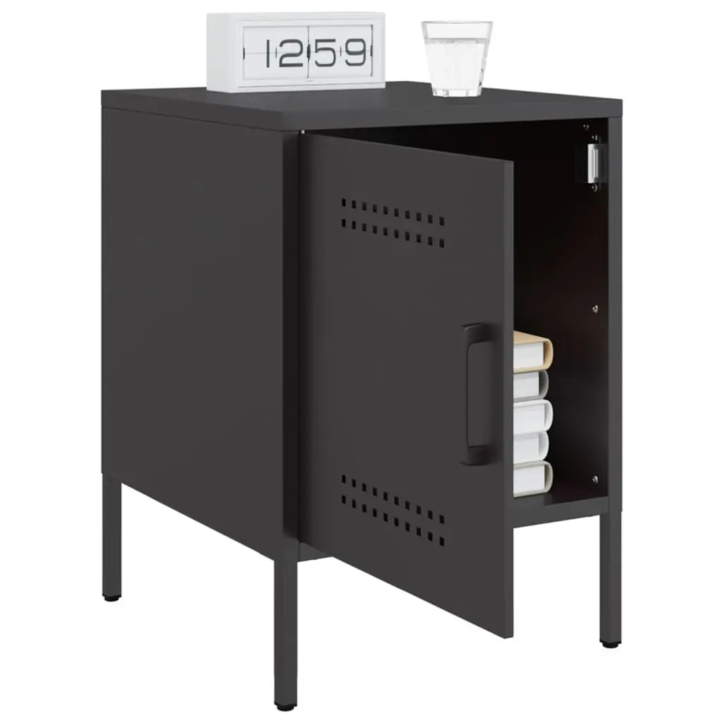 This Industrial Steel Bedside Cabinet strikes a great balance between function and style, making it a must-have for any modern bedroom or living area. Its bold black finish and solid steel construction make it both sturdy and attractive, hitting all the right notes for your storage needs while spicing up your room's look. Ample Storage: The cabinet has loads of room for your personal items, books, or nighttime essentials, keeping everything organized and easy to grab. The spacious interior enhances the cabinet's usefulness, making it simple to access your stuff right at your bedside.Robust Construction: Made with high-quality steel, this cabinet is super strong and built to last. Its sturdy frame can handle daily use, making it a smart choice for years to come.Stylish Design: The industrial look of this cabinet fits perfectly into modern and minimalist decor. Its clean lines and matte finish add a contemporary touch to any room, showcasing your style without overwhelming the space.Easy Maintenance: Designed for practicality, the steel surface is moisture-resistant and just needs a quick wipe with a damp cloth to keep it looking fresh. This easy care means you get to enjoy your space without hassle.Versatile Use: This cabinet isn’t just for beside the bed; it can double as a side table in the living room or an extra storage unit in hallways. Its adaptable nature means it’ll fit right in wherever you need it.