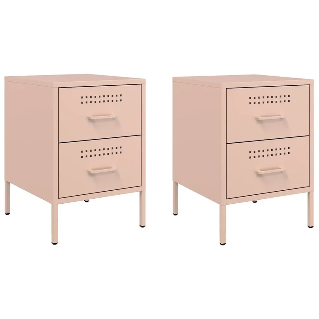 Vidaxl Bedside Cabinet Set Of 2 Pink Steel Bedside Cabinet Rectangular
