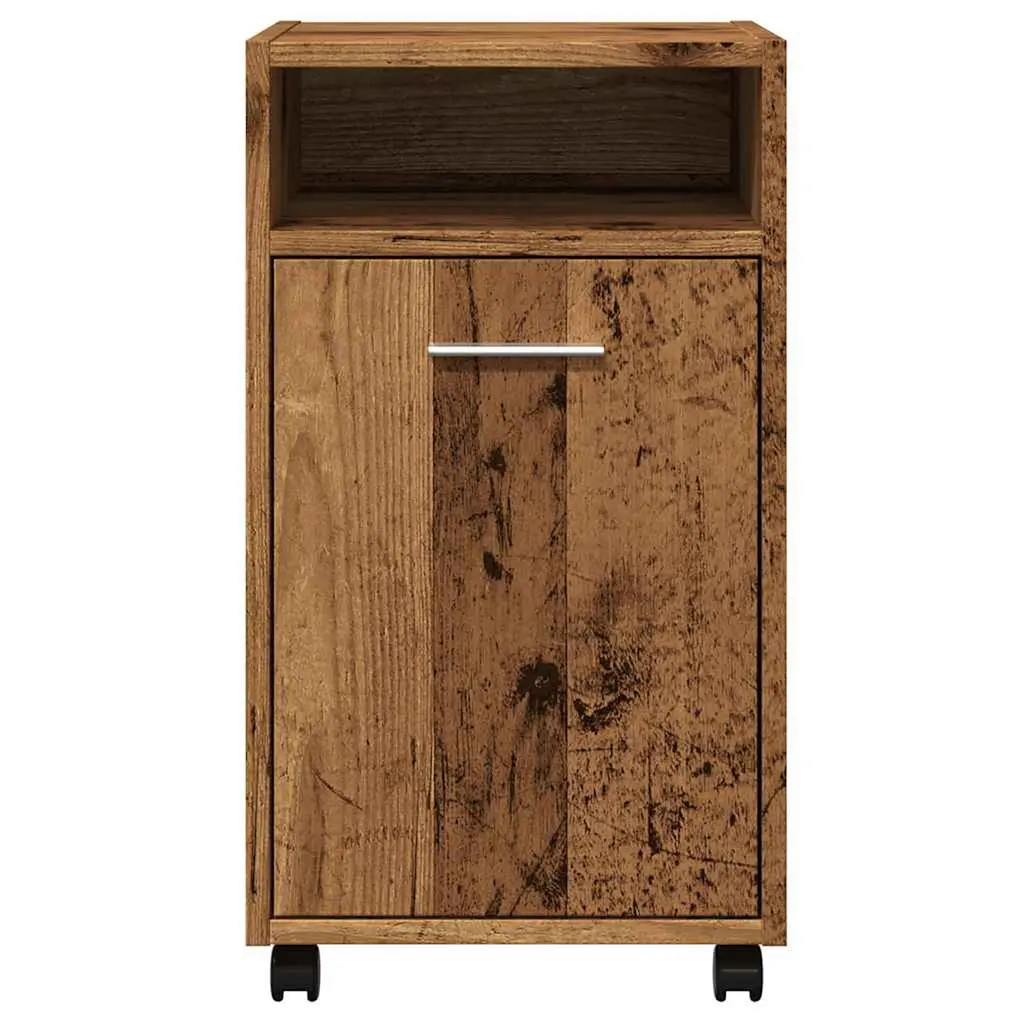 This Old Wood Side Cabinet with Wheels is the perfect mix of function and style, made to fit into all sorts of living spaces. Its rustic old wood look brings a cozy feel, making it a top storage choice for any room where both organization and flair matter. Mobility: The cabinet has four lockable wheels that make it easy to move around while keeping it steady when you need it in place. Perfect for switching up room layouts or relocating as needed.Ample Storage: An intelligently designed interior gives you loads of space to store essentials or decorative stuff, helping you keep things tidy and well organized.Elegant Appearance: Its beautiful old wood texture and matte finish fit in with any decor style and bring a touch of nature into your home, lifting the overall vibe.Sturdy Construction: Made from engineered wood, this cabinet is built to last and stay looking great over time.Multi-functional Use: Great for various spaces, this cabinet’s perfect as a sideboard in the dining room or a handy storage unit in the home office, making it super versatile.