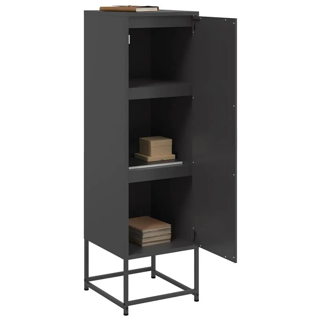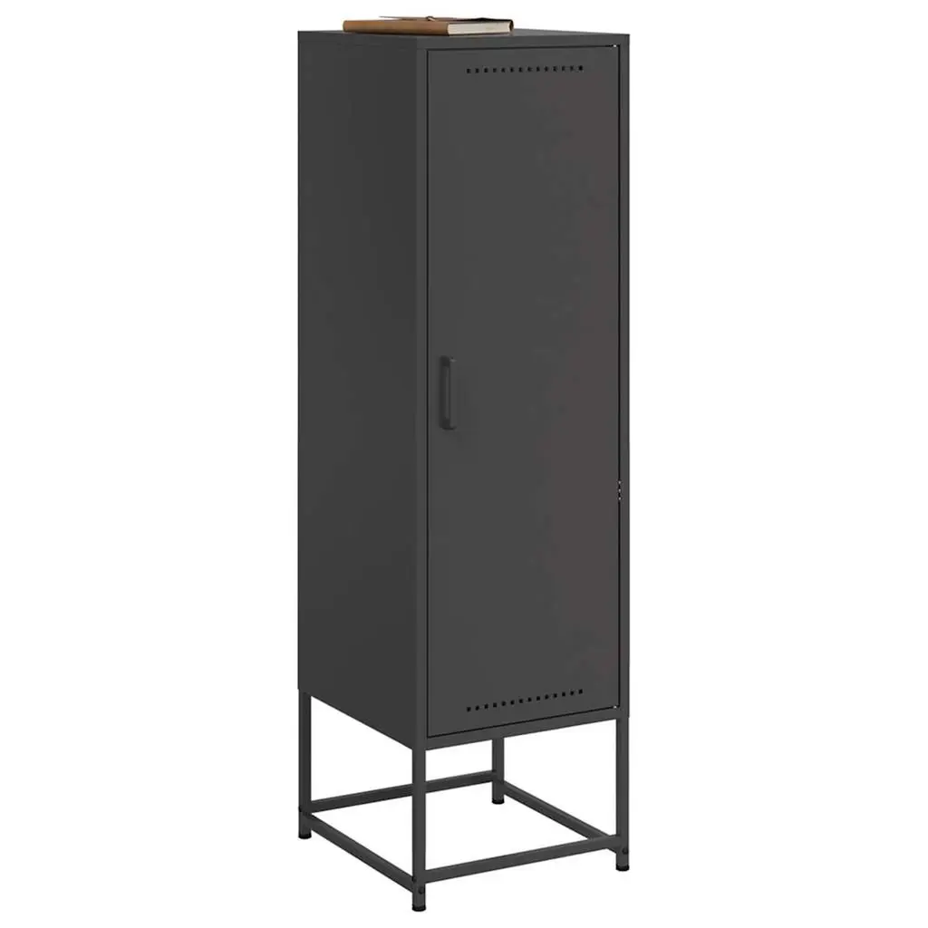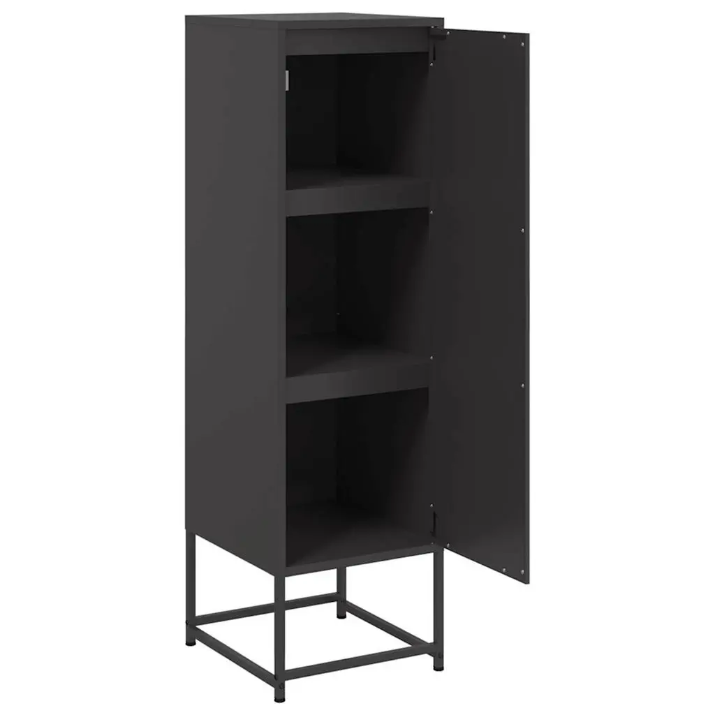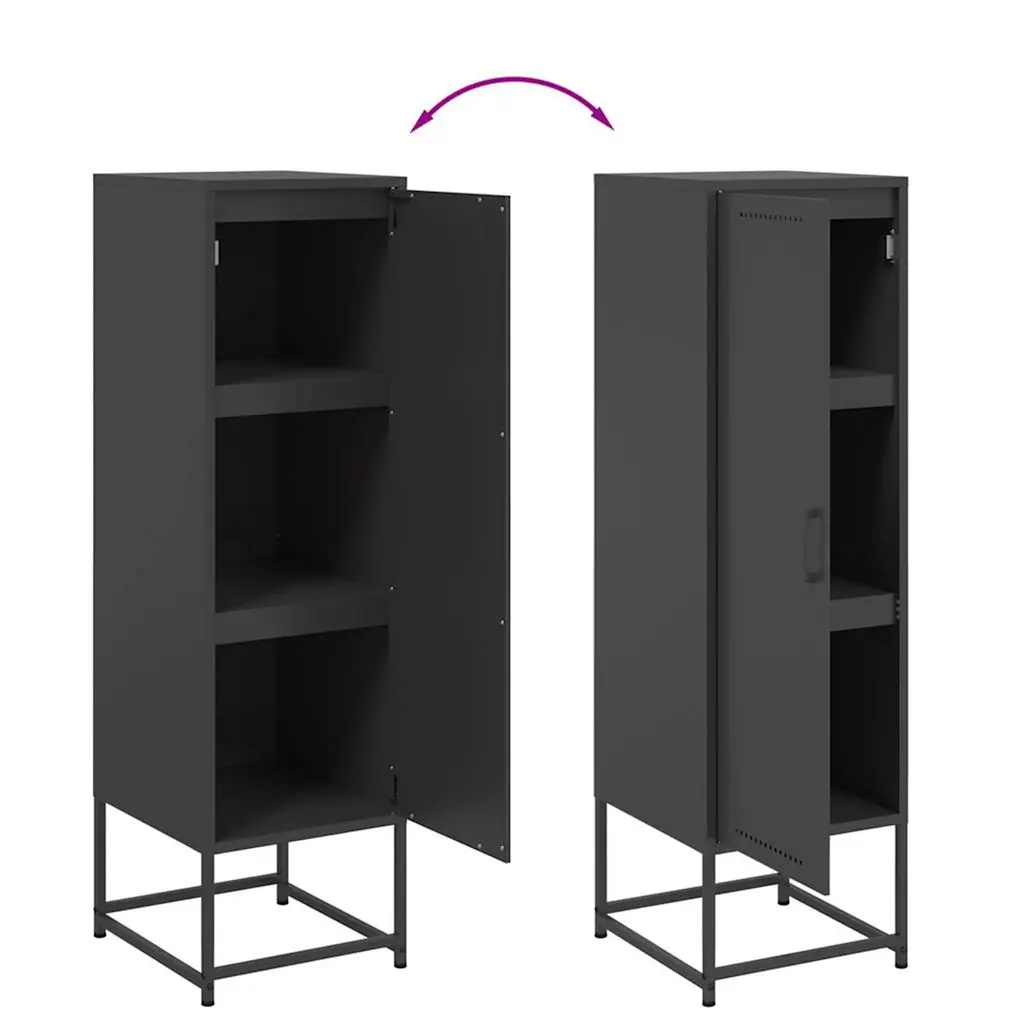 This highboard is not just a pretty piece, it’s a practical storage unit designed with modern interiors in mind. Its industrial vibe fits right in anywhere, boasting a sturdy black steel structure paired with a minimalist look. Industrial Style: Highlights a raw, warehouse-inspired design that complements contemporary spaces. This highboard acts as both a storage unit and a standout feature in your home.Robust Build: Made from powder-coated steel for durability. The treated surface not only looks good but also withstands wear, keeping your investment in prime condition.Hinge Door Access: One big door with metal hinges for easy access. The hinge system is clever, allowing for smooth opening and closing, giving you quick access to your stored goodies.Functional Dimensions: At 48.4 in high, 15.4 in wide, and 14.2 in deep, it provides loads of space without overpowering your room. Its medium size fits well in various setups, big or small.Easy Assembly: Comes with all the tools you need to mount it, making the setup straightforward. Just follow the included instructions to secure it up and enjoy its stylish utility in no time.
