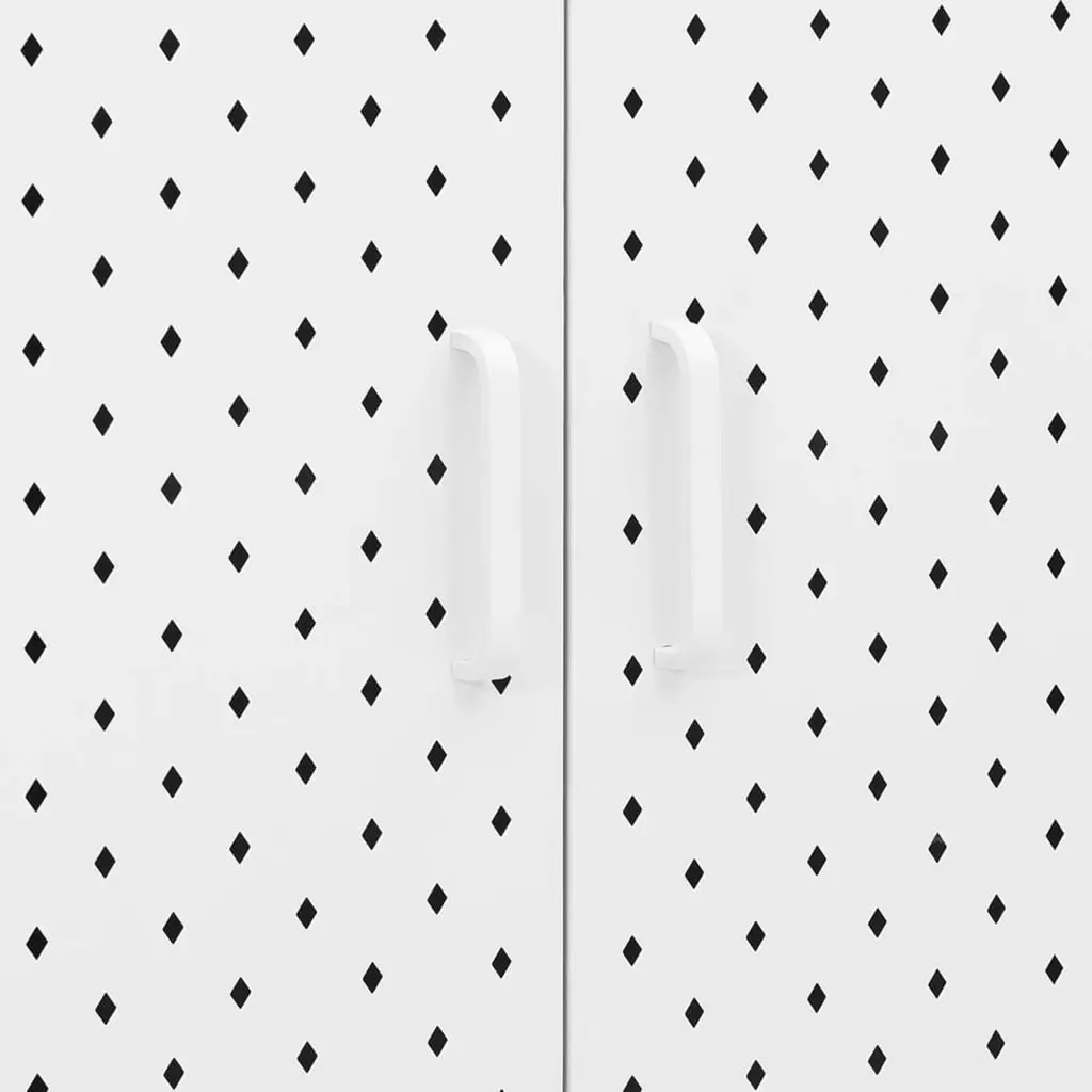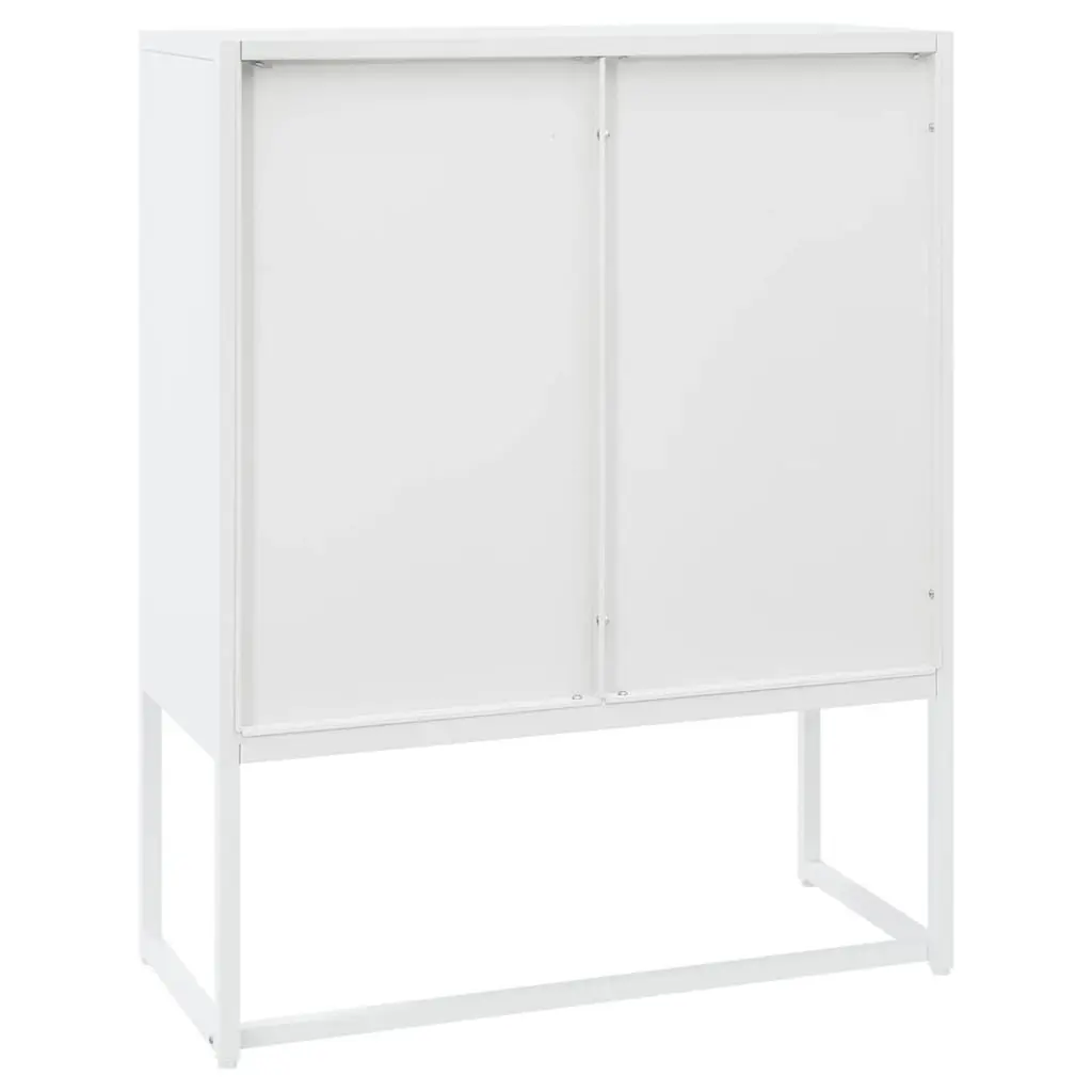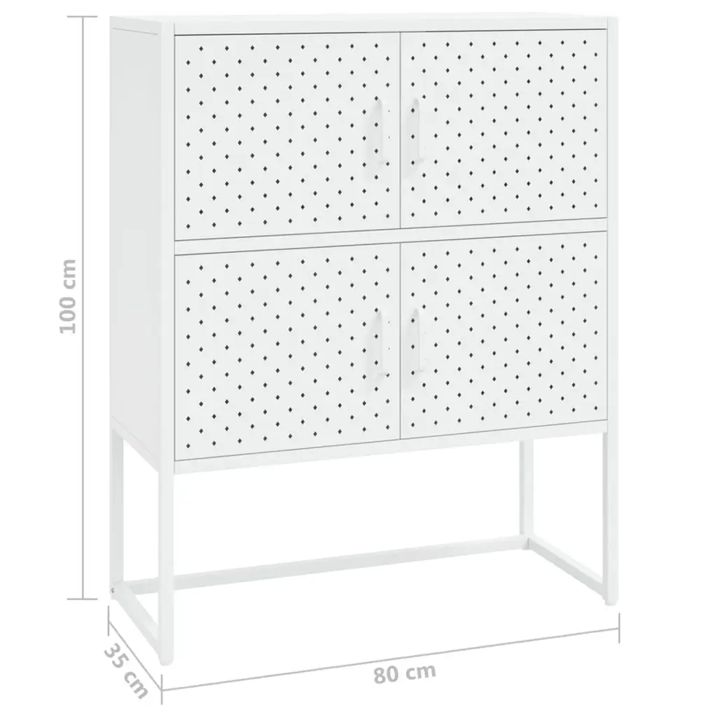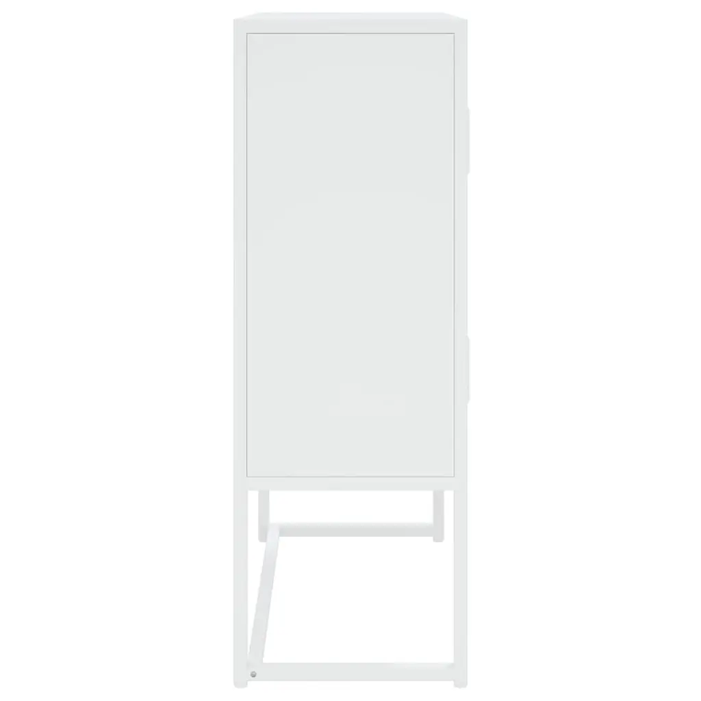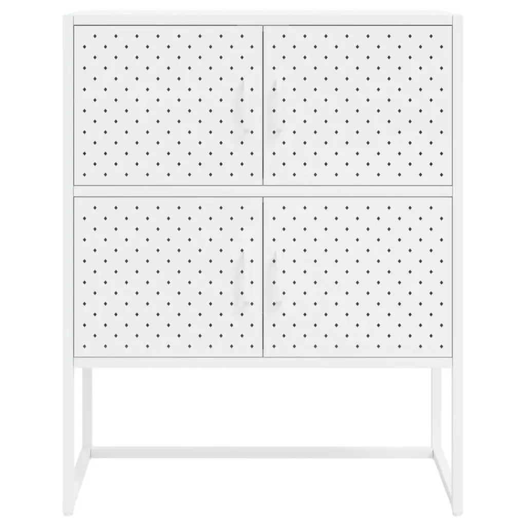 This modern white highboard is designed to uplift your living space with its sleek, geometric lines and matte finish. Perfect for any contemporary home, this storage cabinet serves as a striking focal point while providing plenty of room for organization, making it fantastic for storing books, magazines, and personal items in your living room or hallway. Ample Storage Capacity: With four hinge doors, this storage unit offers loads of room to keep your items neat and easy to grab. The design maximizes vertical storage without cramping your space, making it perfect for smaller areas.Adjustable Shelving Options: You can move the shelves around to fit items of different sizes. Need to fit tall books or decorations? Just reposition the shelves to optimize your storage.Sturdy Steel Frame: Made from high-quality steel, this cabinet mixes style and durability. It's easy to clean and built to handle daily use while looking good for years.Elegant Modern Style: Its minimalist design and pristine white powder-coated finish blend seamlessly with any decor, adding a modern touch to your home.Safe and Secure: For stability, we recommend wall-mounting this highboard, making it a safe option for homes with kids or pets. Its free-standing design allows flexible placement.