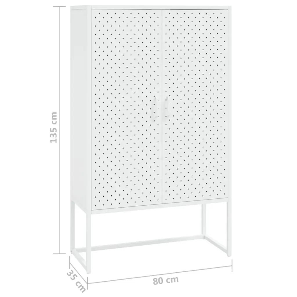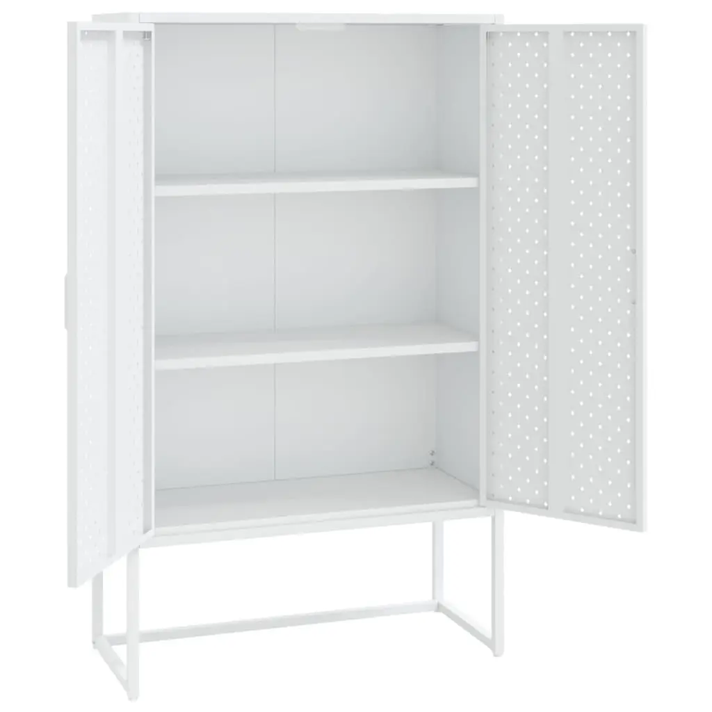 This Modern White Highboard Storage Unit is the perfect blend of function and style, great for adding flair to any living space or office. With its sleek white finish and simple lines, this storage unit keeps your things organized while adding a touch of sophistication to your decor, ideal for everyday use or special occasions. Stylish Design: This unit's got a modern vibe that fits in well with today’s interiors, perfect for living rooms or workspaces.Ample Storage: With two generous steel shelves, it’s an excellent solution for stashing books, decorative pieces, or office supplies.Durability: Made from tough powder-coated steel, it's built to withstand wear and tear, while being simple to maintain.Adjustable Feet: The built-in levelers help it stay stable on uneven floors, so it stands strong and secure.Versatile Use: Ideal for buffets at gatherings or as a chic plant stand, it adjusts to your needs.