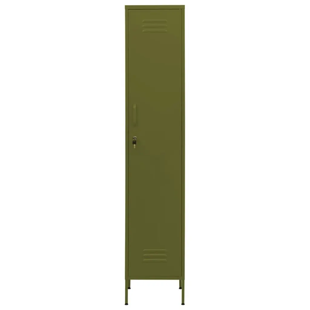 This Olive Green Locker Cabinet is spacious and versatile, perfect for places like offices, living rooms, or schools. Standing at 70.9 in, it boasts a modern design with a smooth, matte finish, giving it an elegant look while providing functionality. Spacious Storage: With four adjustable shelves, you can set the height to fit your storage needs, boosting functionality. The shelves can hold items of different heights, ensuring everything has its place.Secure Locking System: Features a reliable cam lock mechanism to keep your valuables safe, perfect for personal or sensitive documents. It’s a real peace of mind, especially in shared spaces.Durable Construction: Made from top-notch steel, this cabinet is built to last, making it a tough choice for home or work. Plus, the steel finish makes cleaning a doddle.Stylish Appearance: The olive green color adds a modern touch that blends nicely with contemporary decor. It’s not just a storage unit; it’s a stylish piece for any room.Easy Assembly: Comes with simple assembly instructions, just needing two people and common tools. Quick and efficient assembly gives you a solid storage solution without the fuss.