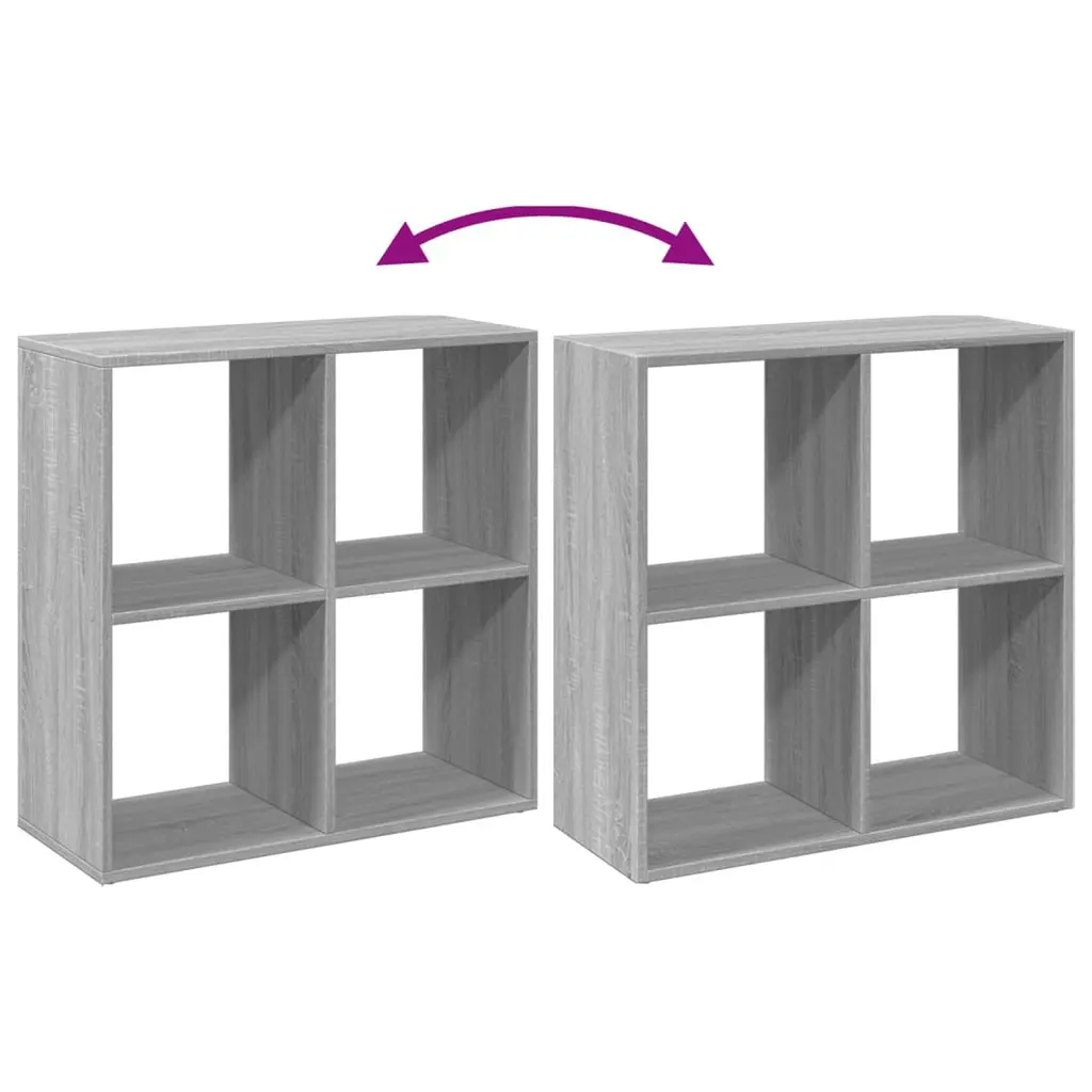 This room divider bookcase is a smart mix of style and usefulness, made from engineered wood to last. With a sleek grey sonoma finish, it spruces up any living area, acting as both storage and a decorative touch that upgrades your space. Ample Storage: This fab piece has four roomy compartments that let you tidy up books, decor, and personal bits easily. It's just what you need to declutter while keeping things handy.Contemporary Appeal: The bookcase shows off a modern geometric pattern that lifts the vibe of any space. Its sleek lines and matte finish give it a classy look, making it a great choice for modern homes.Sturdy Craftsmanship: Crafted from quality engineered wood, this storage unit is made to handle daily use while staying good-looking. Its solid build means you'll get years of use out of it.Versatile Use: Not just for books! This bookcase works as a room divider too, adding both privacy and style to open areas, while doubling as a display shelf for treasured bits.Dimensions Matter: At 27.4 in high, 11.4 in wide, and 27.4 in long, this compact yet spacious bookcase fits easily into smaller spaces, making it ideal for apartments and snug living areas.