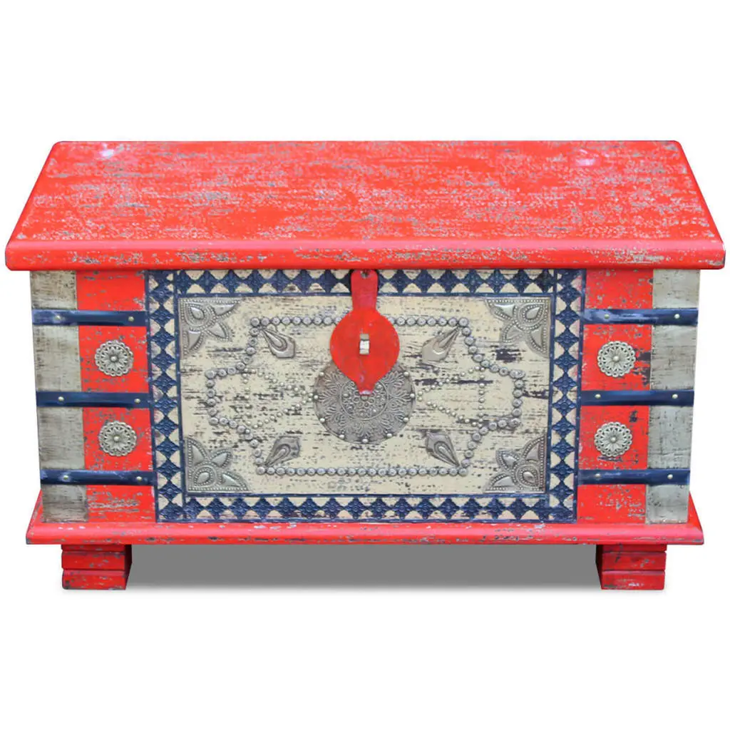 Vidaxl Storage Chest Red Mango Wood Medium Storage Chest Rectangular