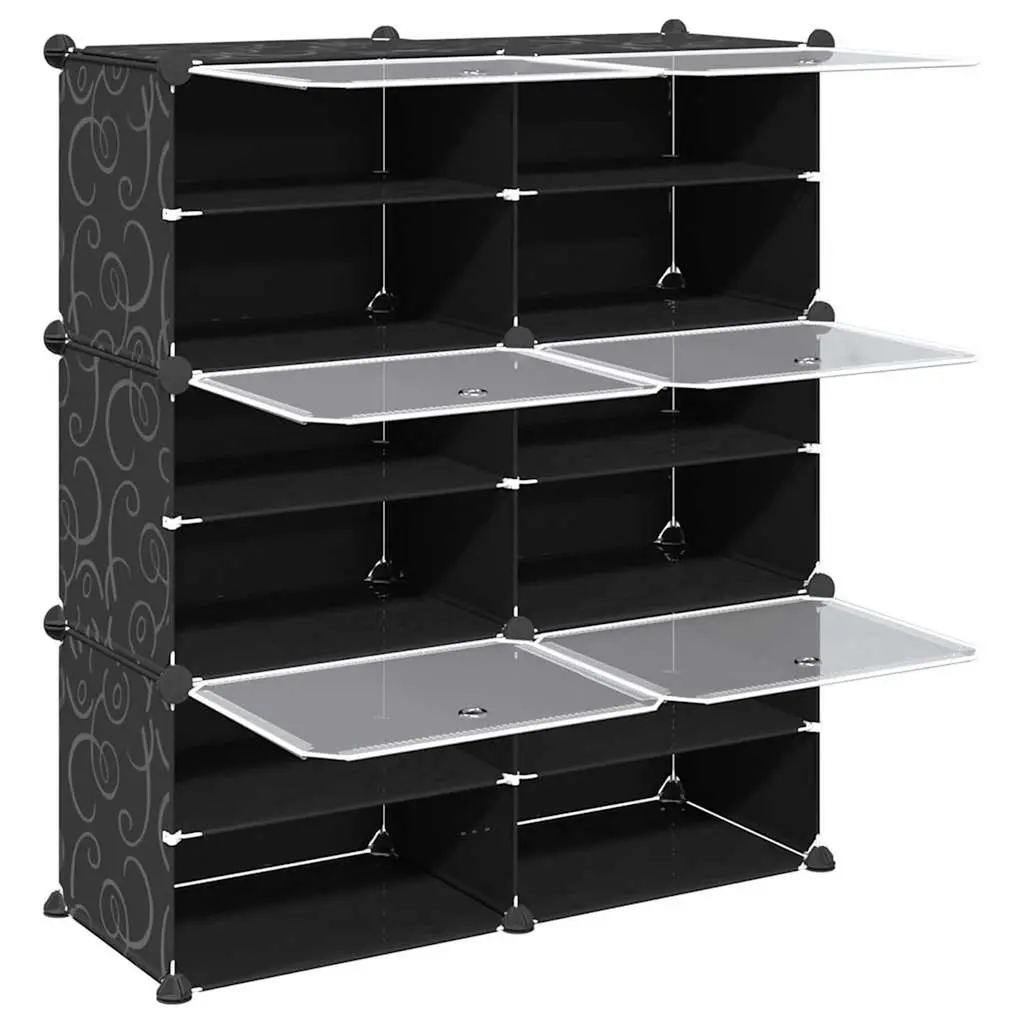 This Modular Cube Storage Organizer is a clever furniture solution for effective storage in modern homes. Perfect for bedrooms, hallways, and offices, its sleek black design adds style while providing ample storage through versatile cube shelves. Each unit features multiple compartments, making it great for organizing clothing, shoes, and accessories while keeping any space looking tidy. Efficient Space Management: The Modular Cube Storage Organizer offers a clever solution for tidiness with its twelve compartments, ideal for keeping things neat. It’s designed to help you easily sort and store shoes, bags, and other essentials, creating a more organized home.Modern Design: With a smooth black finish, this storage unit fits effortlessly into any room's decor, from modern to traditional. Not only is it functional, but it also adds to the overall charm of your space.Modular and Stackable: The unique shape lets you customize it however you want. You can stack more units or arrange them to fit your style, maximizing efficiency in your storage game.Easy Assembly: Each purchase includes the tools you need, along with straightforward instructions, so you can set it up without any fuss.Durable Construction: Made from synthetic polypropylene, this storage organizer is built to last. Its solid materials ensure you can store your stuff confidently, without wear and tear worries.