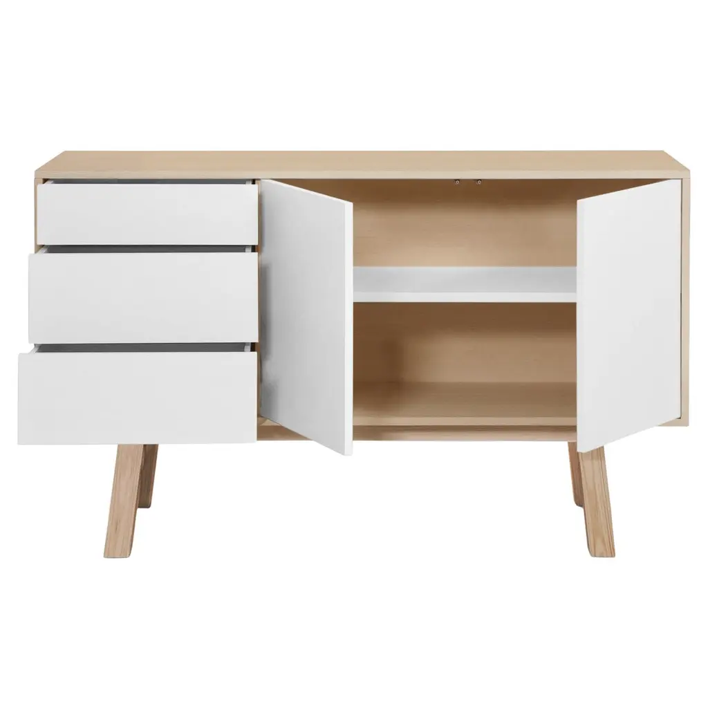 This stylish white TV cabinet is a lovely addition for any living room. It's made from solid pine wood and balances function with style. The smooth finish and classic design give your space a nice touch while organizing your media bits and bobs. Spacious Interior: With multiple compartments, this TV cabinet offers loads of storage, perfect for keeping your entertainment area neat. It holds electronics, games, and accessories all in one place without skimping on style.Solid Construction: Made from solid pine wood, this cabinet is tough and built to last even with regular use. Its sturdy design supports different TV sizes, so you can enjoy your favorite shows worry-free.Classic Aesthetic: With its timeless design, this white cabinet fits in with any decor style, enhancing your living room's overall vibe. It showcases the natural wood grain, creating a cozy and inviting atmosphere.Matte Surface Finish: The matte finish gives a non-reflective surface that’s easy to clean, helping to keep fingerprints and dust at bay. This way, you’ll keep it looking sharp while enjoying your day-to-day use.Versatile Use: This cabinet works perfectly for various living room setups, acting as a media storage unit, sideboard, or entertainment center. Its smart design and compact size mean it can adapt to different needs easily.