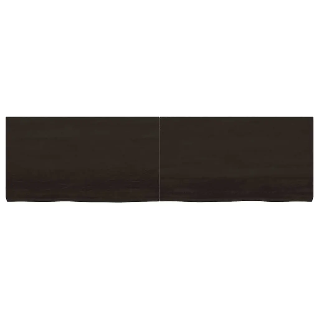 This solid oak wall shelf exudes a rustic yet refined charm, ideal for showing off your cherished items or sprucing up your home decor. Measuring 70.9 in in length and 19.7 in in width, this dark brown shelf fits seamlessly into any living room, kitchen, or bedroom while providing a sturdy surface for books, collectibles, or decorative pieces. The shelf is crafted from solid oak wood, ensuring long-lasting durability and strength. Its handmade quality means that each piece is unique, showcasing the natural grain and character of the wood.With a stylish live edge design, this shelf not only functions as a storage unit but also serves as a beautiful display piece that adds warmth and sophistication to your space. The dark finish further enhances the wood's natural beauty.Being wall-mounted, it provides an excellent storage solution without taking up valuable floor space, making it perfect for smaller areas or minimalist designs.This shelf is versatile enough to be used in different rooms, making it suitable for home decor in the living room, extra storage in the kitchen, or even as a book display in the bedroom.Dimensions of 70.9 in x 19.7 in x 2.4 in optimize it for various functions, while its maximum weight capacity of 79.4 lbs ensures it can hold heavy items securely.