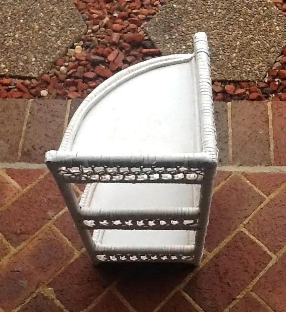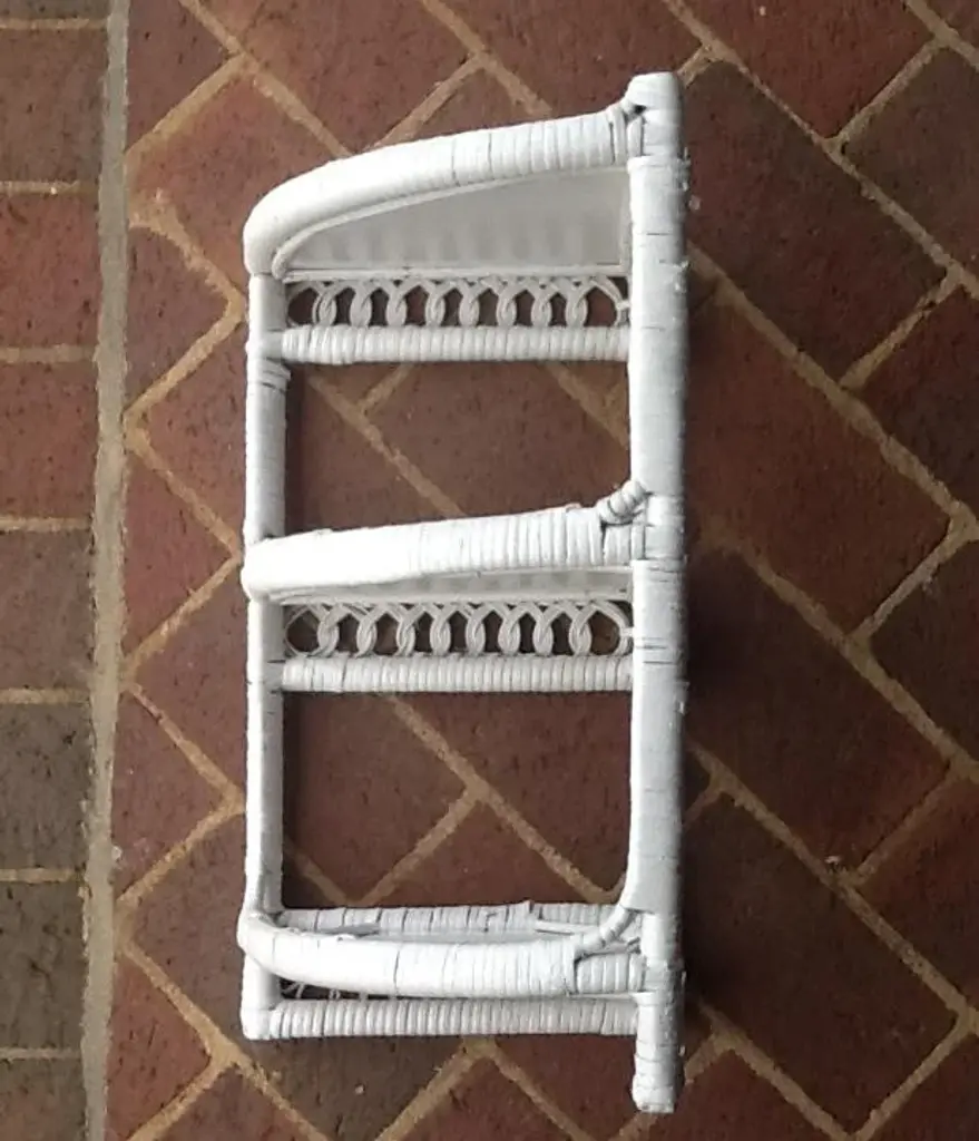 Vintage White Wicker Corner Vanity Shelf Or Plant Stand