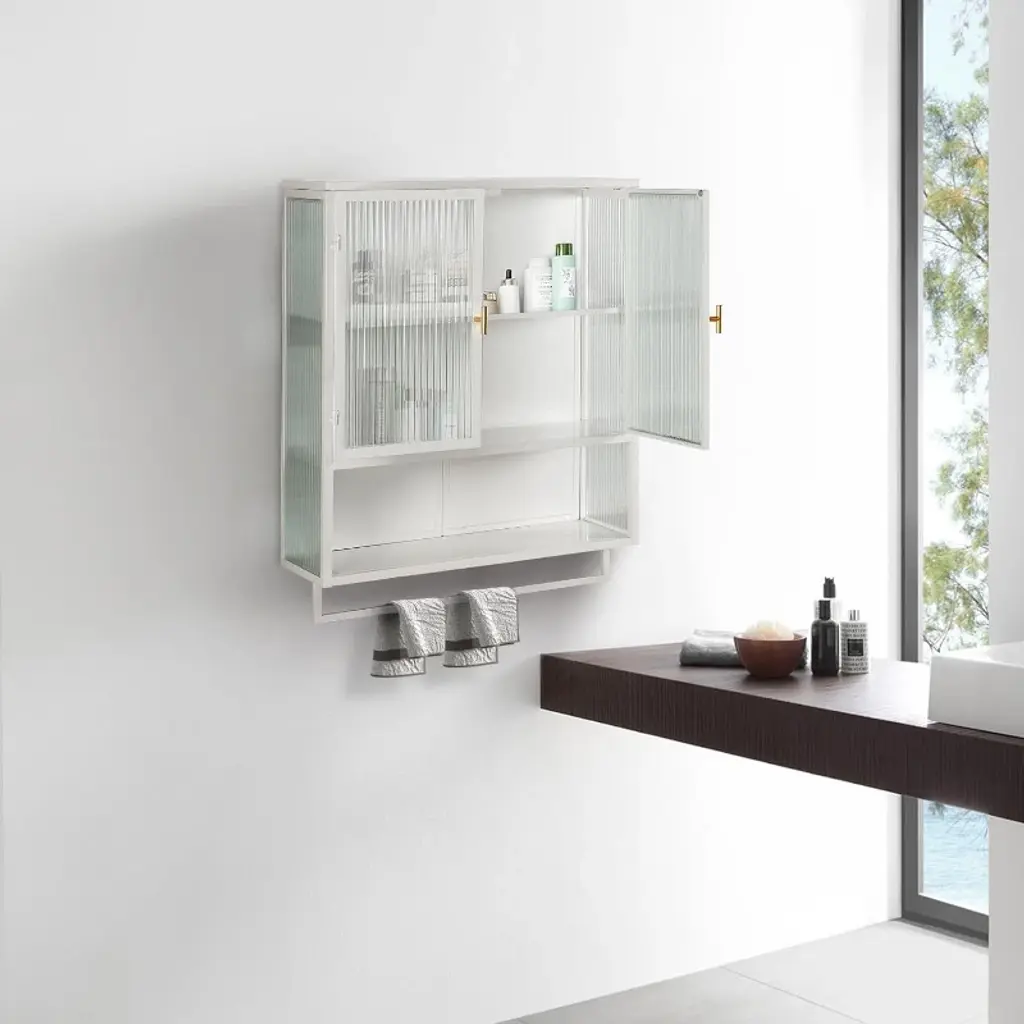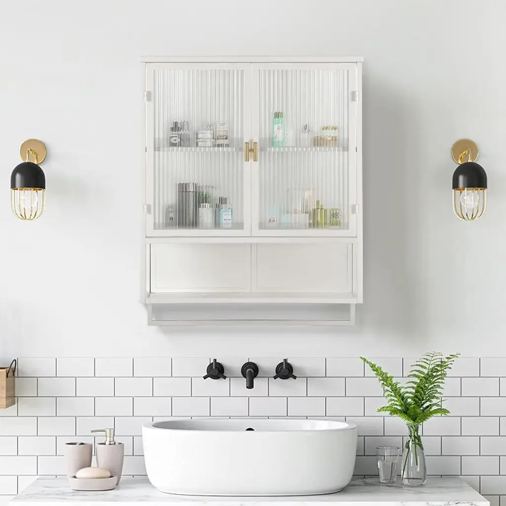 Wall-mounted Bathroom Cabinet With Removable Shelves, Space-saving Over Toilet Storage Unit, Medicine Cabinet With Tempered Glass Door, White