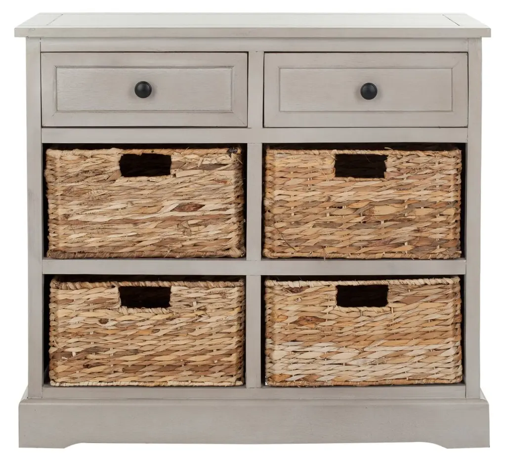 A handy addition to an entryway, kitchen, or sitting space, this pine storage chest features six removable sea-grass baskets to store and neatly organize your favorite home accents and keep shoes, clothes, and home accessories tidy and out of sight.