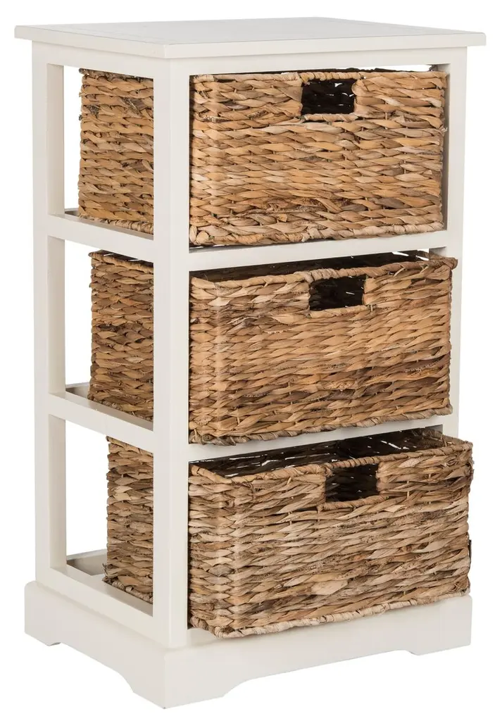 This Wren Storage Unit features three removable sea-grass baskets to store and neatly organize your favorite home accents