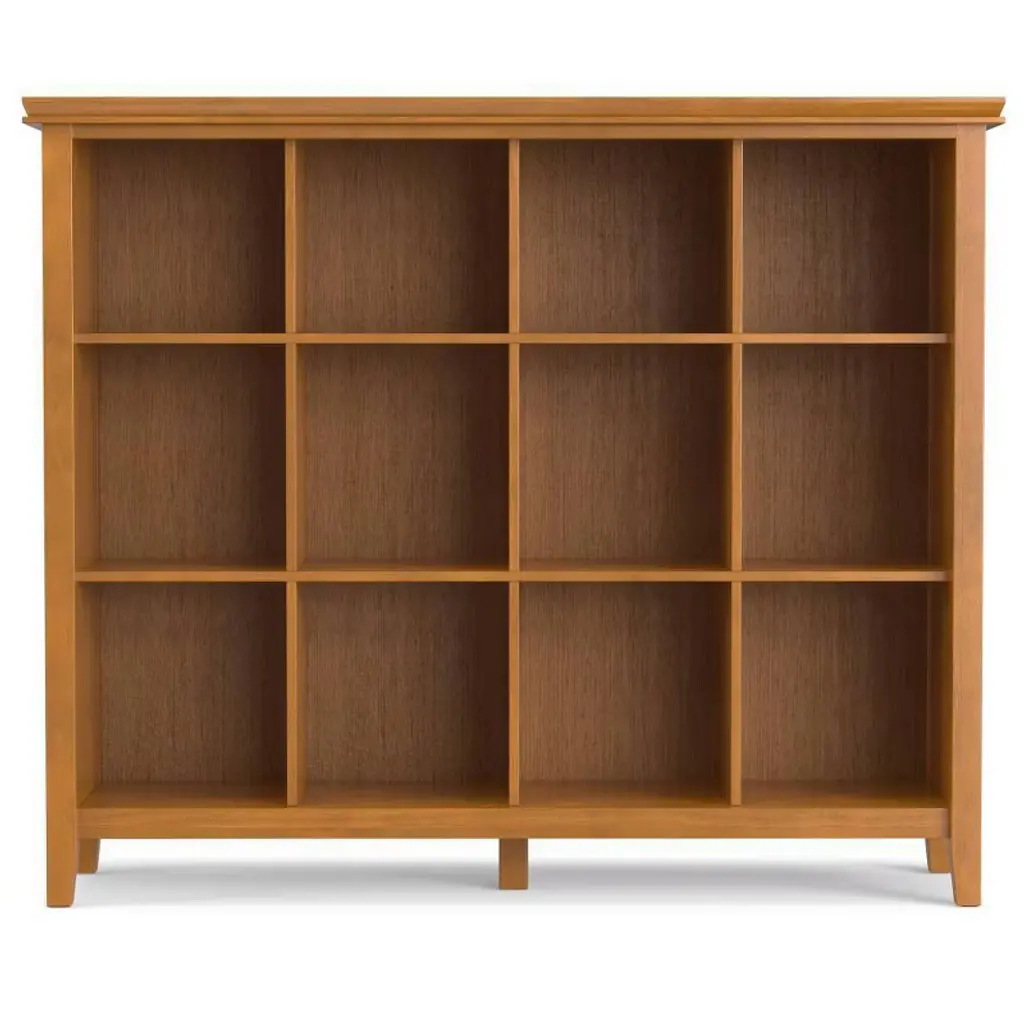 Wyndenhall 48" Stratford 12 Cube Storage Honey Brown: Mid-century Modern Organizer, Pine Wood Frame