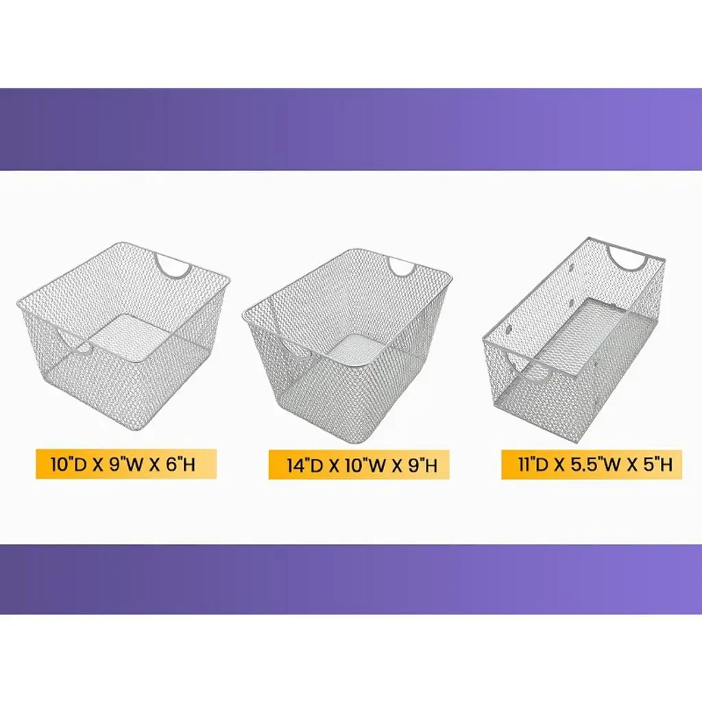 "The Storage Open Bin Storage Basket by YBM HOME INC provides a simple and practical way to keep things organized. You don't have to hunt around for things any more as the ventilated design of this basket storage unit lets you see the contents without even taking them out. Store anything and everything, from fruits, vegetables, pantry items or toiletries to cleaning supplies. Or for toys, Made of sturdy silver mesh construction, the storage basket is strong enough to last for years. The metal frame of the basket features handles for better portability. With a faint matte silver color, the storage organizer blends easily with any decor! YBM HOME INC. Open Bin Baskets are great for any home or office: -If you are looking to be organized these are perfect for you. -Our Bins come in various sizes allowing you to organize Kitchen, Laundry Room, Office Garage and More. -YBM HOME INC. Baskets are made from Stainless Steel wire, so they are sure not to rust and will become a staple item in your home."