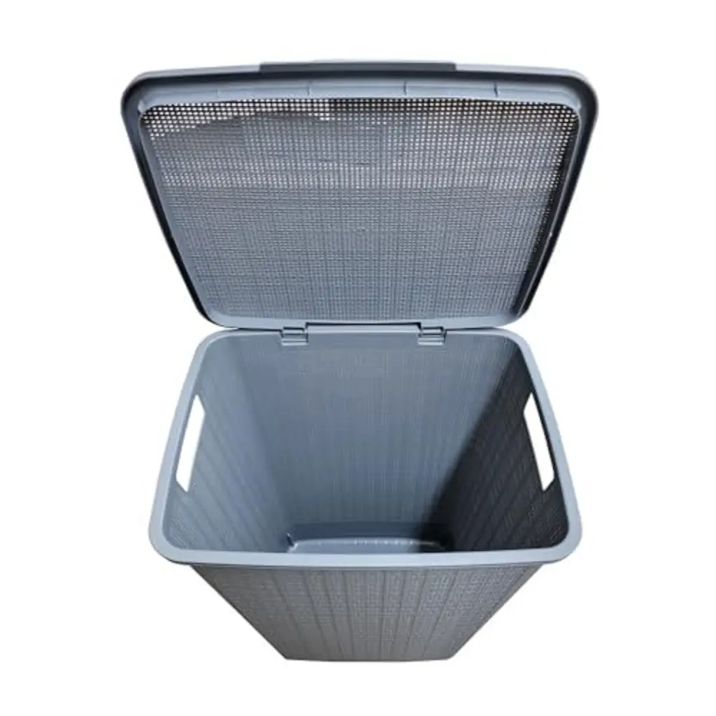 Ybm Home Plastic Rattan Laundry Hamper Basket With Hinged Lid, 1663-6 - 16.75" L X 13.5" W X 23.75" H - Light Grey