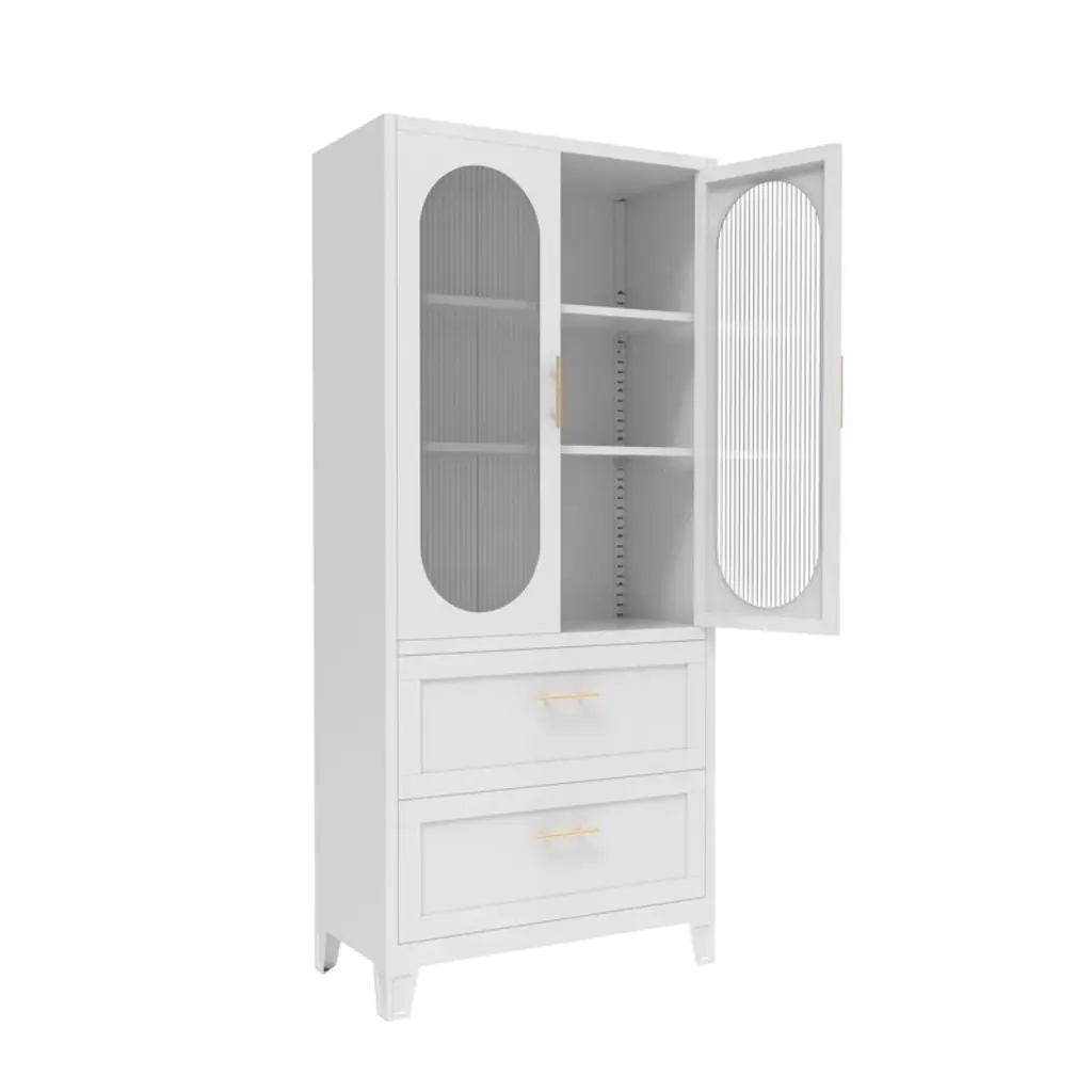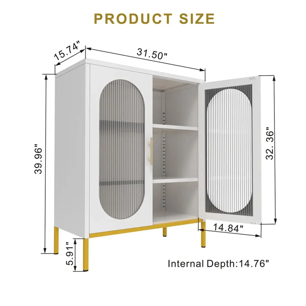 Transform your space with our Modern Accent Cabinet, combining timeless elegance with practical functionality. Its sleek fluted glass doors and gold-tone details bring luxury to any room, while the adjustable shelving system ensures customizable storage to suit your needs. Built from premium cold-rolled steel, this cabinet offers superior durability and stability for years of use. Designed for effortless assembly, it comes with clear instructions and video support. Whether in your kitchen, living room, or office, this cabinet offers versatile utility as a storage unit, bookshelf, or display shelf.