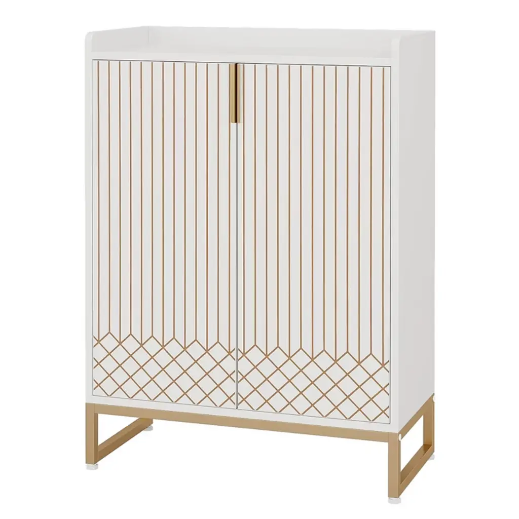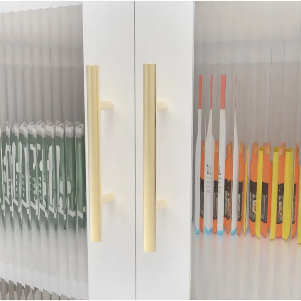 Zachvo Refined White Fluted Glass 2-door Cabinet With Adjustable Shelves & Gold Details – Perfect For Kitchen, Office & Dining Spaces